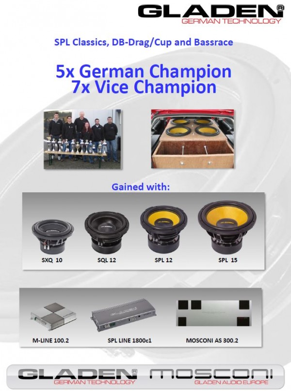 Gladen SPL 12 sa stal x-krát víťazom v najrôznejších súťažiach v akustickom tlaku. V danej cenovej hladine nie je na svete moc lepších subwooferov. Pre nadšencov do SPL je to skvelá voľba za ešte rozumné peniaze.