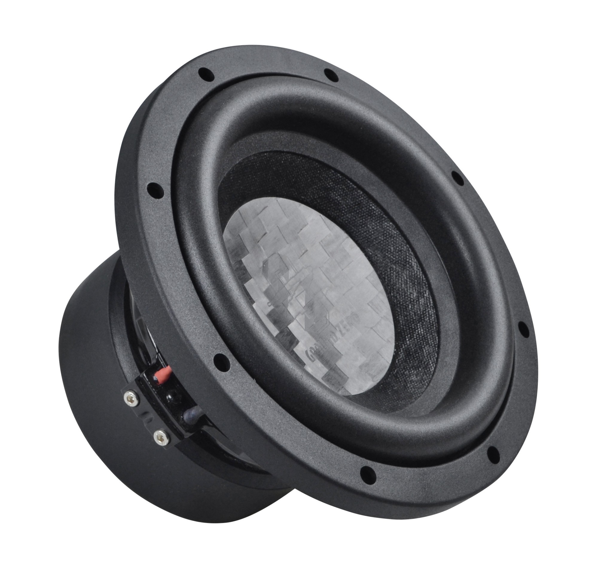 | Priemer subwooferaPriemer subwoofera je uvádzaný na skrutkovacie diery. Celkový vonkajší priemer subwooferu je zvyčajne o 1-2 cm širšie, podľa rozmerové kategórie subwoofera. U 30-tich cm subwooferu je vonkajší priemer vč. ochranné gumy 31,8 cm a u 25-tich cm subwooferu je to 26,5 cm vr. ochranné gumy. | 200 mm (8\") |