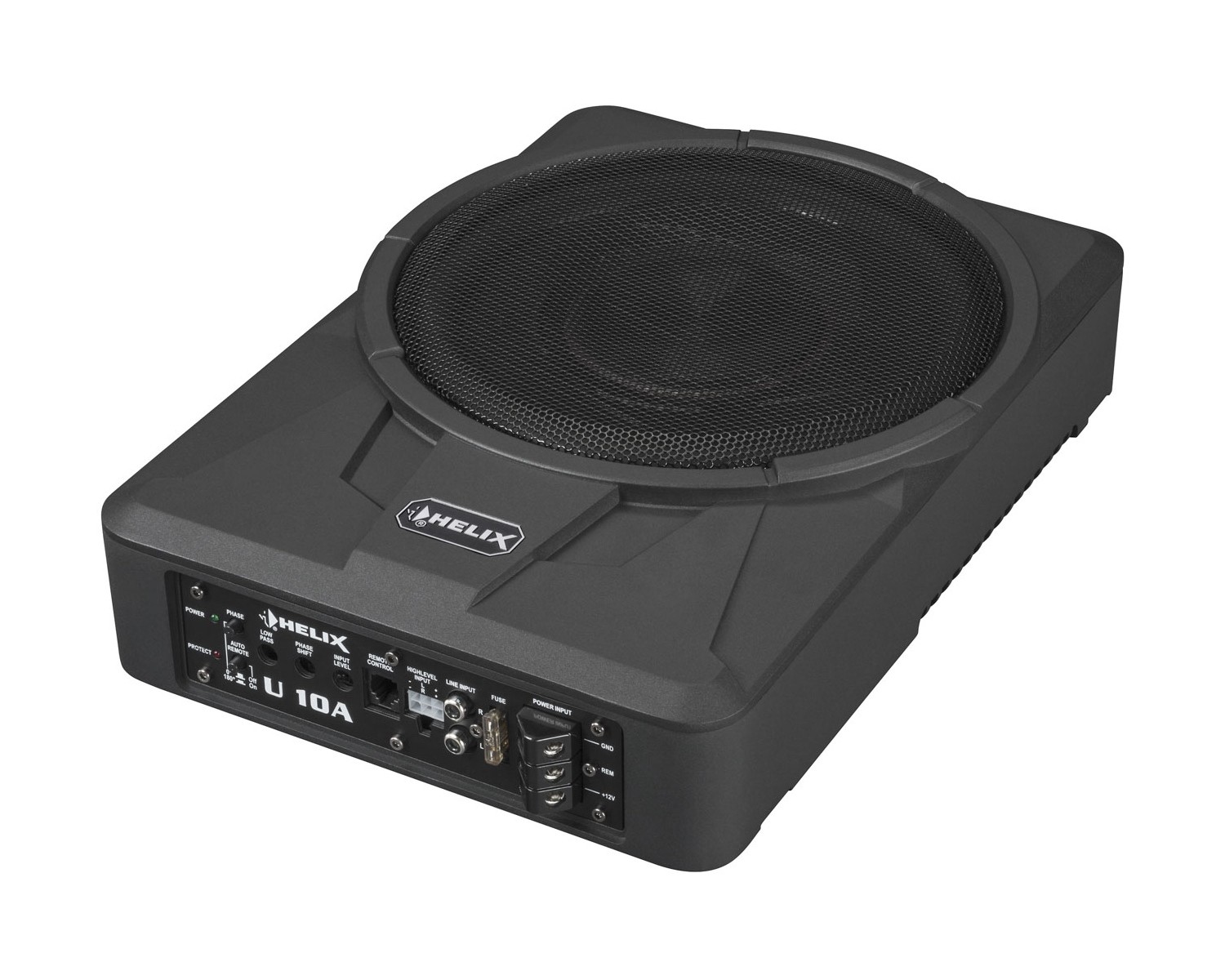 Ak je montážny priestor vo vozidle obmedzený a existujúce automobilové hi‑fi systémy potrebujú v nízkofrekvenčnom rozsahu „nakopnúť“ bez veľkého úsilia, sú nové aktívne subwoofery HELIX U 10A a U 8A správnou voľbou. Robustné meniče, poháňané výkonnými integrovanými zosilňovačmi triedy AB s výkonom 180 W RMS, s pevným hliníkovým kužeľom a tepelne odolnými hlasovými cievkami ľahko premieňajú výkon zosilňovača na pôsobivé basy. Vďaka komplexným možnostiam nastavenia, ako je plynule nastaviteľný dolnopriepustný filter a obzvlášť citlivé nastavenie fázy, je možné reprodukciu nízkych frekvencií dokonale prispôsobiť akustickým podmienkam vo vnútri vozidla. Výbava 2‑kanálovým vstupom vysokej úrovne s funkciou automatického zapínania a 2‑kanálovým nízkonapäťovým RCA vstupom zaručuje bezproblémovú integráciu. Vďaka mimoriadne plytkej konštrukcii šasi je inštalácia jednoduchá, najmä ak je priestor extrémne obmedzený. Tieto malé „bass boostery“ sa zmestia napríklad aj pod sedadlá.