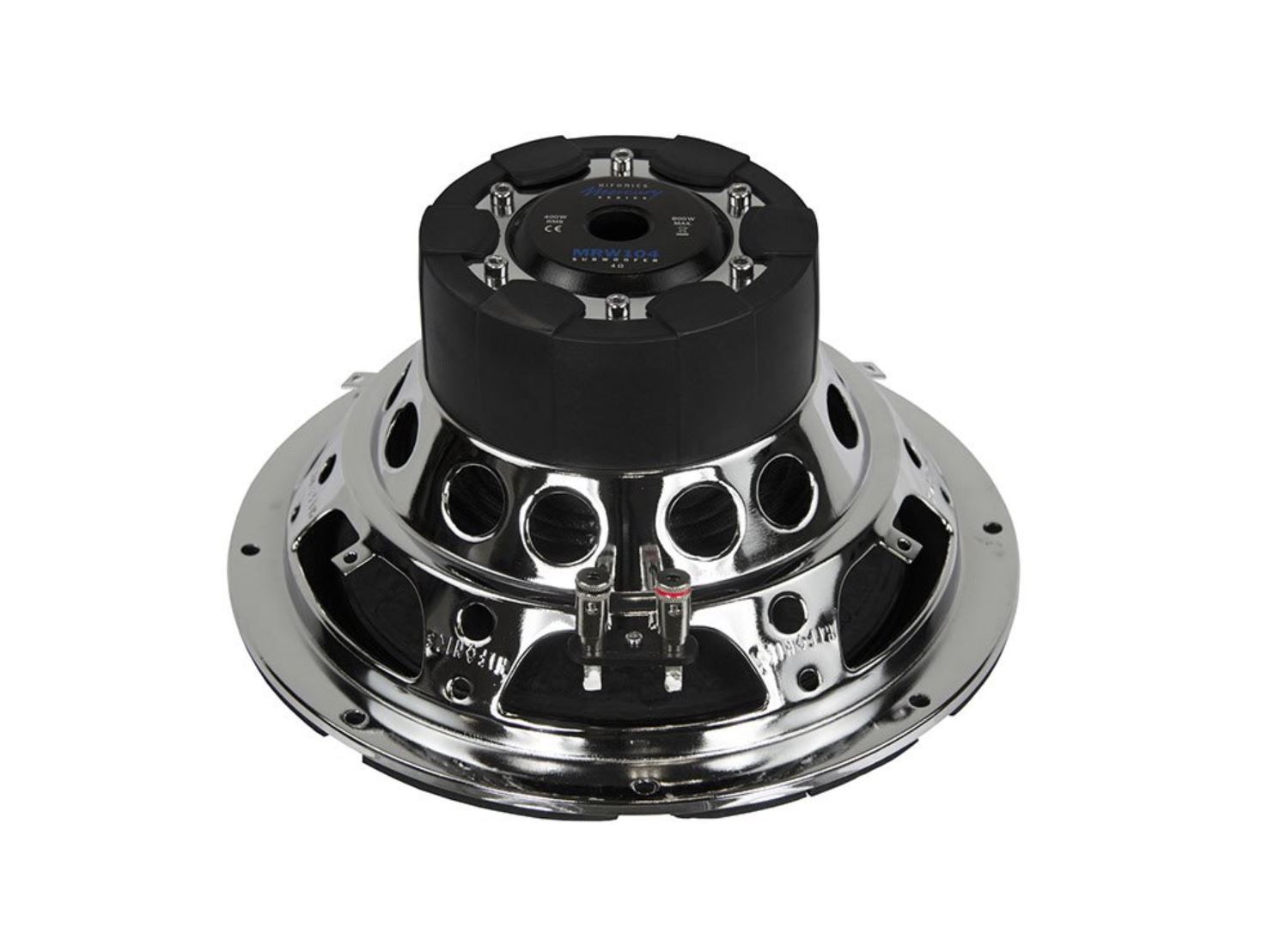 Ideálne využitie dvoch subwooferov, či už Mercury MRW104 alebo MRW84, nájdete v bassreflexovom boxe alebo v uzavretej ozvučnici. Napríklad MRW84 v 20litrovom bassreflexovom boxe vytvára extrémne nízku dolnú medznú frekvenciu (-3 dB) 32 Hz! S miernou stratou hlbokých basov, ale s väčšou dynamikou a pevnými basmi, sa subwoofery tiež veľmi odporúčajú na použitie v malých uzavretých ozvučniciach. Kvalita subwooferov Mercury je skvelá, hlavne chrómované oceľové koše v dizajne Hifonics dávajú nielen vizuálny efekt, ale aj výber použitých komponentov je presvedčivý: ingredienciami sú papierové membrány, odolné gumové závesy a robustný spider. Aj malý MRW84 s priemerom 20 cm dokáže, rovnako ako jeho veľký brat MRW104, prísť s veľkou 50 mm kmitacou cievkou. Oba woofery sú opatrené chrómovaným košom, takže si prídu na svoje aj v obrátených inštaláciách.