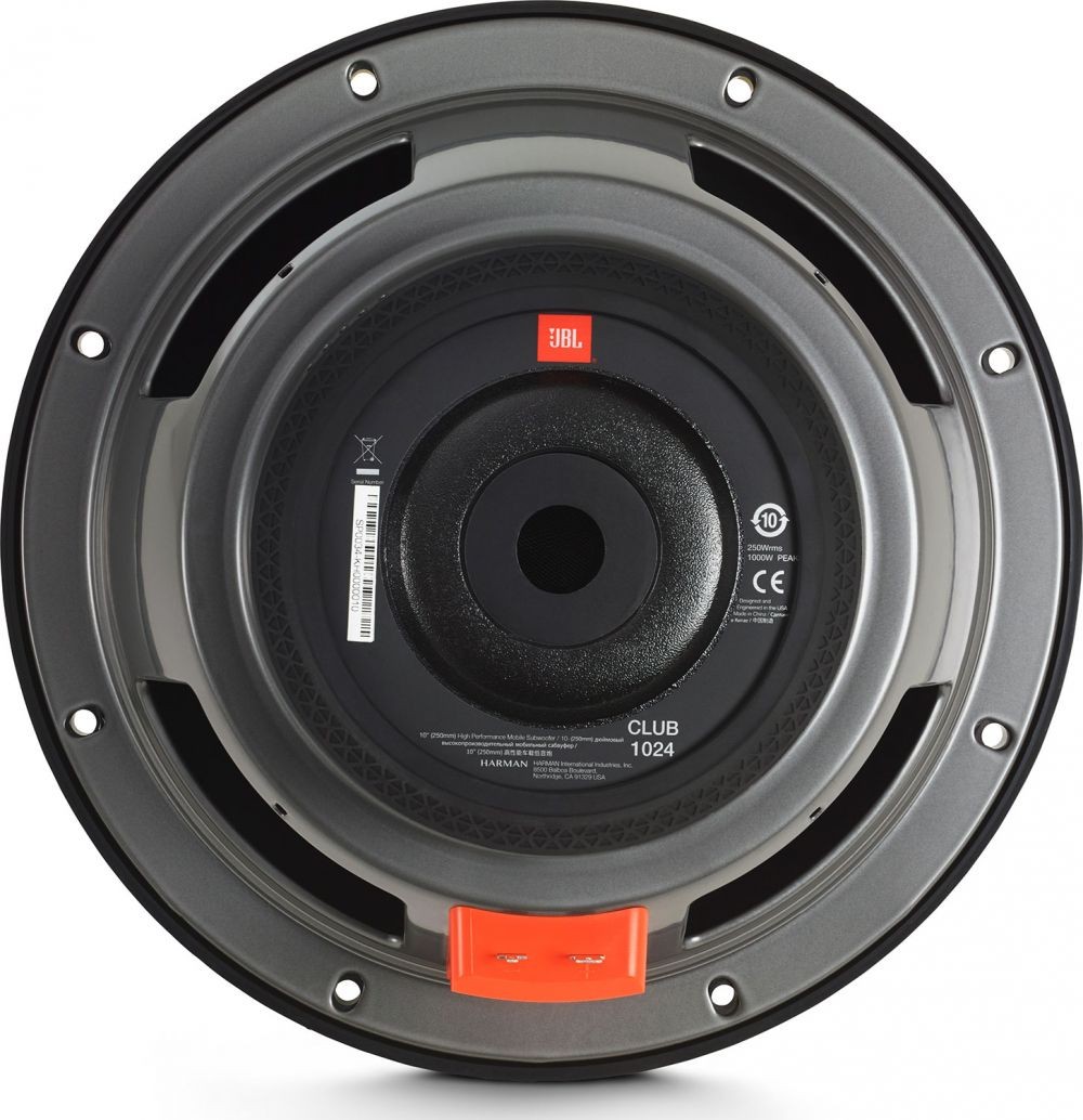 | Priemer subwooferaPriemer subwoofera je uvádzaný na skrutkovacie diery. Celkový vonkajší priemer subwooferu je zvyčajne o 1-2 cm širšie, podľa rozmerové kategórie subwoofera. U 30-tich cm subwooferu je vonkajší priemer vč. ochranné gumy 31,8 cm a u 25-tich cm subwooferu je to 26,5 cm vr. ochranné gumy. | 250 mm (10") |