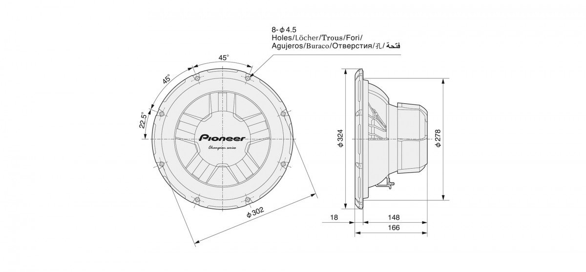 300 W RMS, 95 dB (SPL 1W / 1m), 4 Ω, 12 "