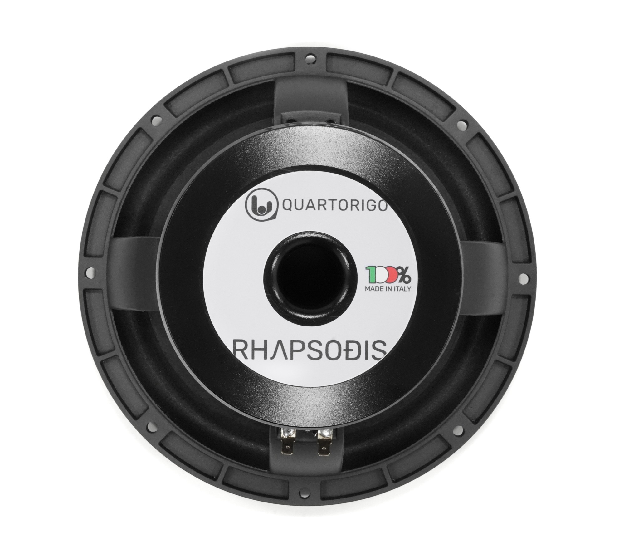 Ako etymológia dokonale vystihuje, pojem Rhapsodis vyjadruje vysoko emotívnu skladbu plnú silných pocitov a nadšenia. Podobným spôsobom by sa dali definovať reproduktory Rhapsodis, ktoré patria k tým najvšestrannejším na dnešnom trhu. Zrodené na vyvolanie intenzívnych emócií verných hudbe, verných svojej DNA. Rhapsodis ponúka ucelenú sústavu od najnižších basov až po vyššie frekvencie, s úžasnou dynamikou a realizmom. Perfektne zladený štvorpásmový systém vás nadchne svojim pokročilým zvukom a obsahuje všetko, čo potrebujete pre kvalitné ozvučenie svojho automobilu. Konkrétne stredobasový, stredový a výškový reproduktor a samozrejme subwoofer. Jeho membrána je vyrobená rovnako ako u reproduktorov z lisovaného papiera, aby bola zaistená čo najvyššia kvalita a vernosť zvuku. Vďaka dôkladnému vystuženiu je membrána aj napriek svojej nízkej hmotnosti dostatočne tuhá a odolná voči rezonanciám v pohybe, k čomu prispieva aj vysoko odolný záves. Taktiež masívny liaty kôš exceluje svojou tuhosťou a schopnosťou tlmiť vibrácie. Vďaka jeho veľmi otvorenému dizajnu je zaistená aj optimálna ventilácia a odvod tepla z kmitacej cievky pri vysokých výkonoch. Ak sme pri výkone subwoofera, nenechajte sa zmiasť papierovo slabšími parametrami. Cievka s priemerom 64 mm v kombinácii s robustným ferritovým magnetom zaisťuje možno až prekvapivú dynamiku a vysoký výkon s presným podaním nízkych kmitočtov. Ostatne to sa týka všetkých produktov Quartorigo, ktoré sa nechvália marketingovo páčivými parametrami, ktoré si trh žiada, ale tými skutočnými.Rhapsodis je vďaka svojej konštrukcii dokonca o niečo "rýchlejší" ako jeho súrodenci z vyšších modelových radov a vzhľadom na jeho vysokú citlivosť je vynikajúcou voľbou aj pre zosilňovače s nižším výkonom. Garanciu vysokej kvality a perfektného spracovania zaisťuje medzinárodne uznávaná certifikácia 100% Made in Italy.