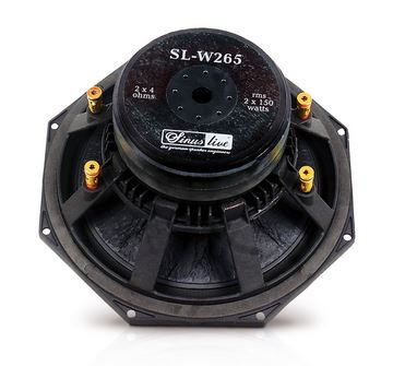 Rokmi overený 10" subwoofer od Sinus Live s dvojitou kmitacou cievkou a dostatočným výkonom 300 W RMS.
