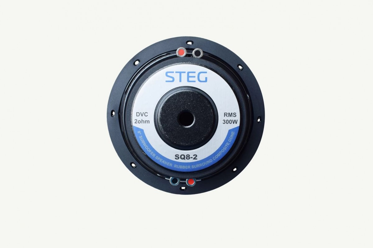 S cieľom zabezpečiť vysoký akustický výkon pri malom objeme ozvučnice boli subwoofery SQ8-2 (2 + 2 Ω) a SQ8-4 (4 + 4 Ω) navrhnuté pre použitie v 8,5 litrovej uzavretej skrini. Komponenty subwoofera STEG SQ8 boli vyvinuté s primárnym cieľom - zabezpečiť vysoký výkon v úzkych priestoroch. Subwoofery STEG SQ8 používajú špeciálnu geometriu študovanú v našich laboratóriách, ktorá zaručuje široký rozsah subwoofera a udržuje montážnu hĺbku na minime. Zavesenie membrány bolo starostlivo navrhnuté tak, aby sa zabránilo javu oscilácie. To umožňuje, aby bol subwoofer namontovaný blízko zadnej steny ozvučnice, čím sa maximálne využije znížená montážna hĺbka.