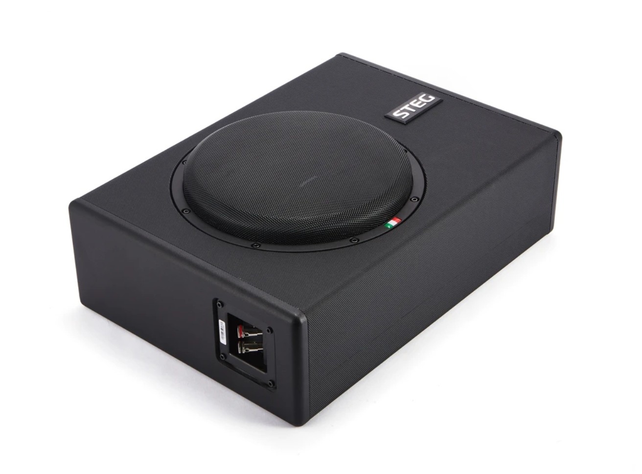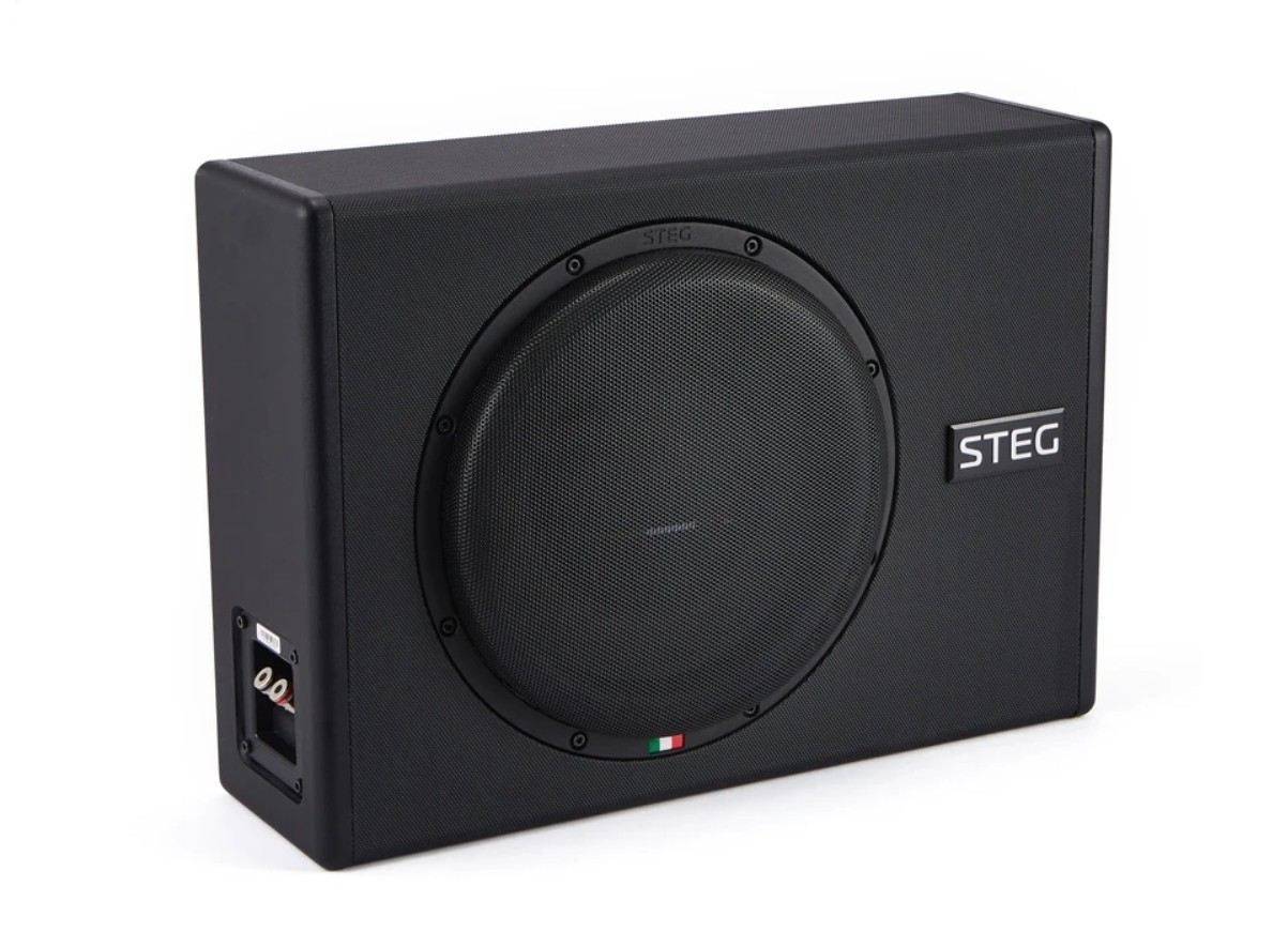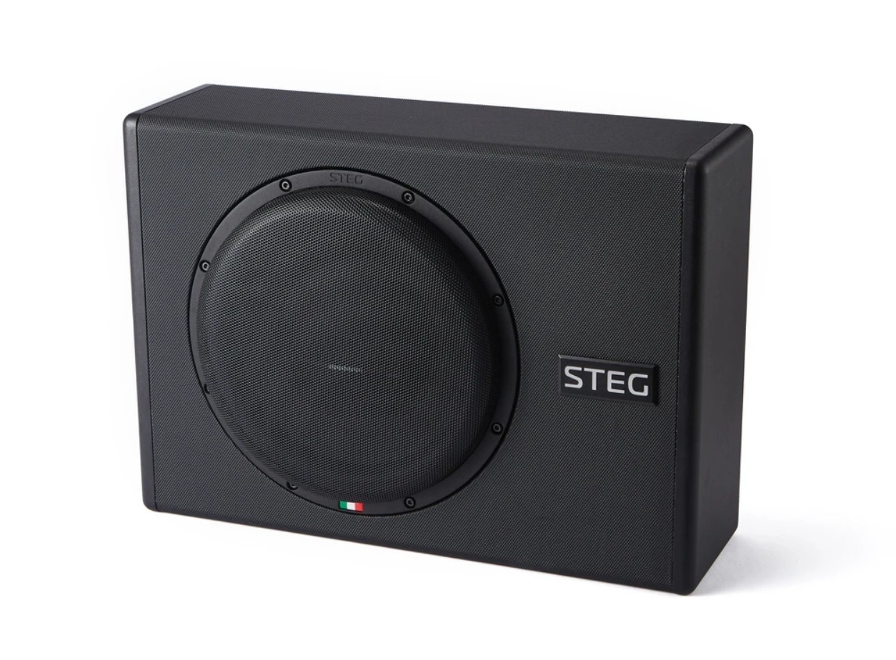 Steg ST-10P je jeden z najpokročilejších subwooferov talianskeho výrobcu Steg, ktorý sa zameriava na vysokú kvalitu zvuku. Presne navrhnutá uzavretá skriňa s veľmi kompaktnými rozmermi má objem iba 12 litrov, čo znamená, že subwoofer zaberá minimálny priestor v batožinovom priestore. Napriek svojej malej veľkosti ponúka subwoofer vysoký výkon s bohatou porciou nízkych frekvencií a vynikajúcou kvalitou zvuku. Konštrukcia uzavretej skrine, ktorá odkazuje na jej taliansky pôvod, umožňuje presnú a vernú reprodukciu najnižších frekvencií, a to aj v prípade inštalácií zameraných na kvalitu zvuku. Robustná mriežka chráni subwoofer pred poškodením a voliteľné nožičky umožňujú inštaláciu smerom nahor aj nadol, vďaka čomu si môžete prispôsobiť zvuk a dizajn podľa svojich preferencií.