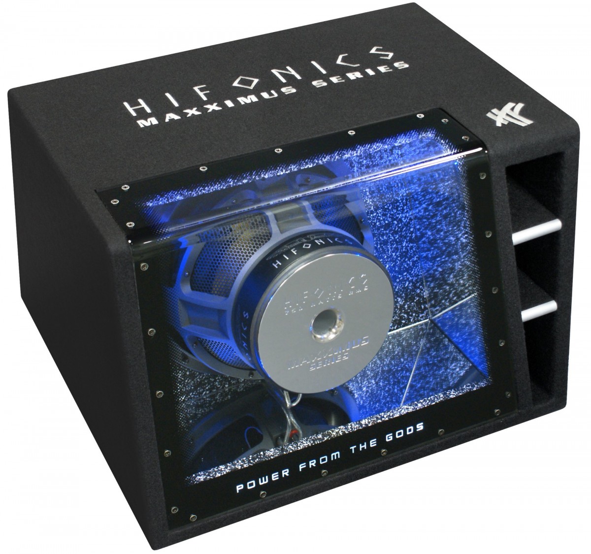 Vyšité logo, presklený box, ambientné podsvietenie, veľmi slušný výkon – tak nejak by sa dal v skratke charakterizovať 12" subwoofer Hifonics v bandpassovej ozvučnici.