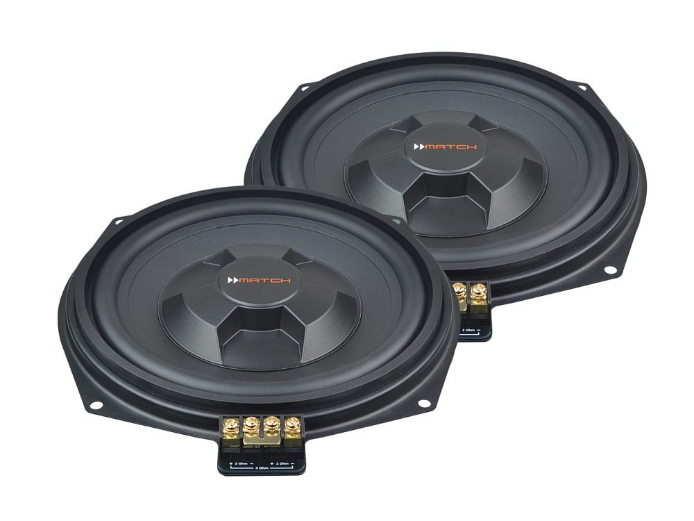 Subwoofery MW 8BMW-D sú ideálnym basovým plusom pre všetkých, ktorí nie sú spokojní s reprodukciou basov vo svojom BMW a chcú do svojho vozidla implementovať extrémne priestorovo úsporné subwoofery pod sedadlo. Vďaka reproduktorovým košom a konektorom Plug & Play, špecifickým pre BMW, je inštalácia do továrni určených inštalačných miest všetkých modelových radov BMW s podsedlovým subwooferom rýchla a jednoduchá. Tieto subwoofery ponúkajú aj ideálne podmienky pre univerzálne použitie. Zvlášť malá inštalačná hĺbka umožňuje použitie v extrémne malých uzavretých ozvučniciach alebo častiach auta. Predimenzovaná kmitacia cievka s priemerom 42,5 mm zaručuje vysokú odolnosť. Špeciálna pripojovacia svorka s pozlátenými skrutkovacími svorkami navyše umožňuje dve rôzne konfigurácie a tým najflexibilnejšie možnosti pripojenia. Pokiaľ je subwoofer namontovaný cez priložený kovový mostík, má subwoofer impedanciu 1 x 4 Ω. Každú kmitaciu cievku je možné ovládať samostatne bez mostíka (impedancia 2 x 2 Ω) a umožňuje tak optimálne pripojenie k zosilňovaču MATCH Plug & Play. Bez ohľadu na to, či sa tieto subwoofery používajú ako vylepšenie basov vo vašom BMW alebo ako riešenie problému malých ozvučníc, rozhodne pridajú množstvo silných basov pre hudobný pôžitok.