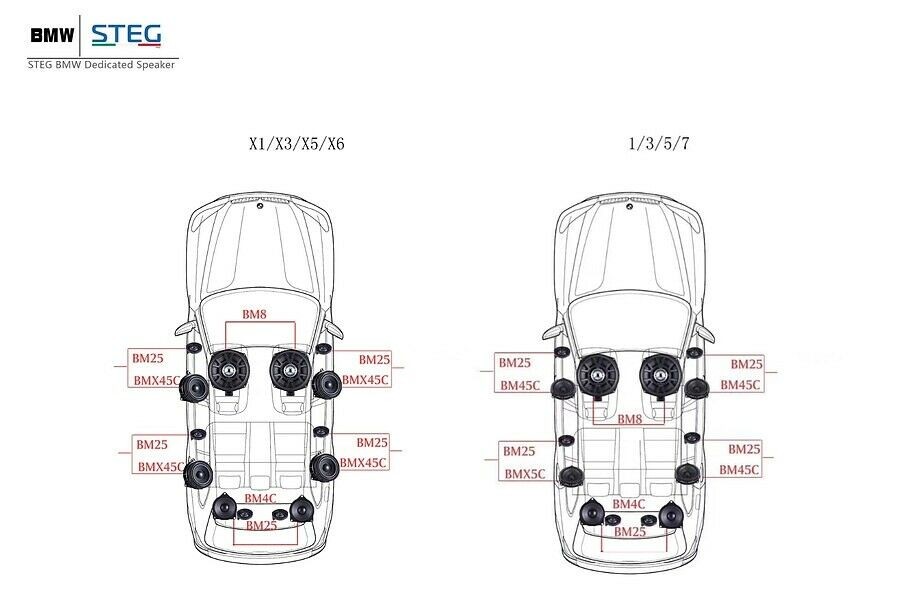 BMW je pre väčšinu vodičov ukážkou kvality a nemeckej precíznosti. Čo sa týka audiosystémov, je to však ako v každom inom automobile – nie je naň príliš kladený dôraz. Ako je zrejmé z filozofie značky STEG, všetky výrobky sú vyrábané na základe niekoľkých rokov testovania a výberu tých najlepších materiálov. Nie inak tomu je aj u týchto reproduktorov pre vozidlá BMW, v ktorých sa celý tento mnohoročný vývoj zrkadlí. Nemusíte vo vozidle nič upravovať, rezať alebo inak prispôsobovať, nijako zložito napájať zosilňovače na originálny systém, alebo narušovať elektroniku. Celé sety reproduktorov sú presne prispôsobené výmene originálnych reproduktorov, a to systémom plug and play. Jednoduchšie to už byť nemôže! Reproduktory sú citlivejšie, majú vyšší výkon a vďaka kvalitným materiálom aj úplne iný zvukový prejav. Preto je tu obrovský rozdiel už pri napojení na originálny systém. Zámerom talianskych vývojárov bolo dopriať vám vo vašom vozidle zážitok zo živého koncertu, a to sa s týmito reproduktormi podarilo na 100%!