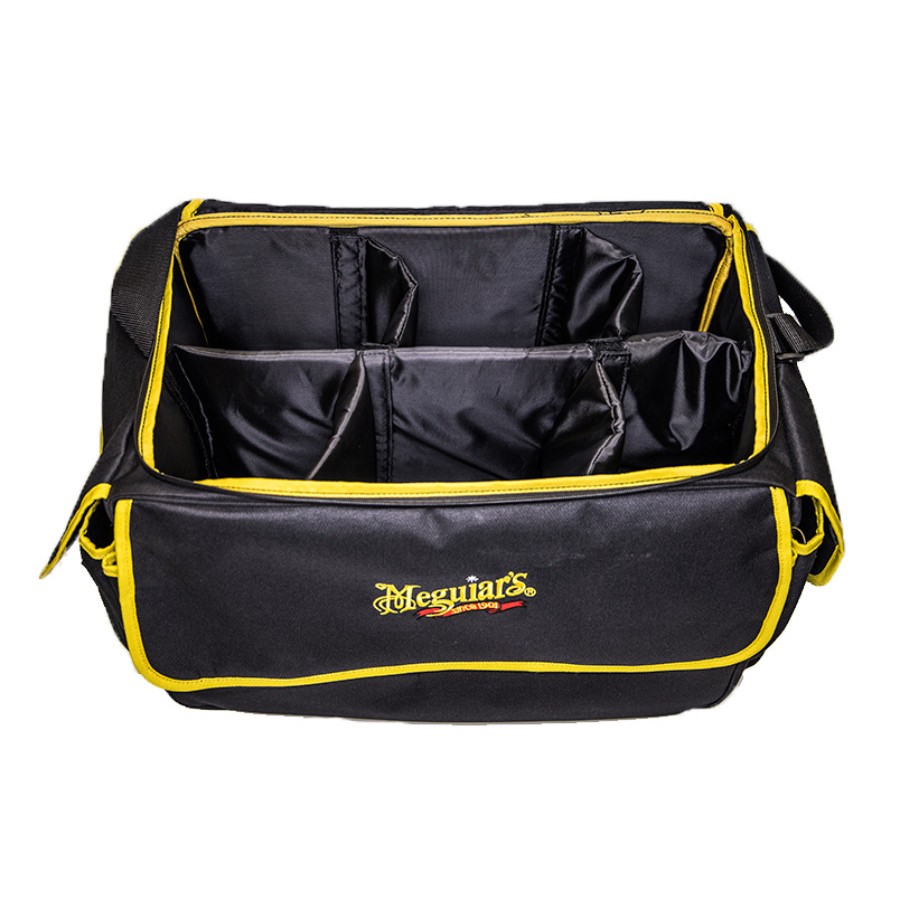 Meguiar's Detailing Bag vyniká svojou veľkosťou a priestorom, do ktorého sa zmestí veľa autokozmetiky, ktorú už budete mať raz a navždy na jedinom mieste. Vnútorný priestor je možné ľubovoľne rozdeliť pomocou nastaviteľných prepážok, aby ste v ňom vytvorili od jediného veľkého vrecka až po 6 sekcií, ktoré prehľadne a precízne oddelia všetky prevážané produkty. Z vonkajšej strany navyše nájdete ďalšie 4 priestranné vrecká na aplikátory, leštiace kotúče, utierky, kefy, štetce a rad ďalšieho príslušenstva. Samozrejmosťou je nastaviteľný popruh cez rameno a suchý zips na spodnej strane, ktorý zabezpečí, že sa Meguiar's Detailing Bag nebude samovoľne presúvať vo vašom batožinovom priestore. Toľko miesta na autokozmetiku Meguiar's ste doteraz v jednej taške nemali šancu získať. Až do teraz!