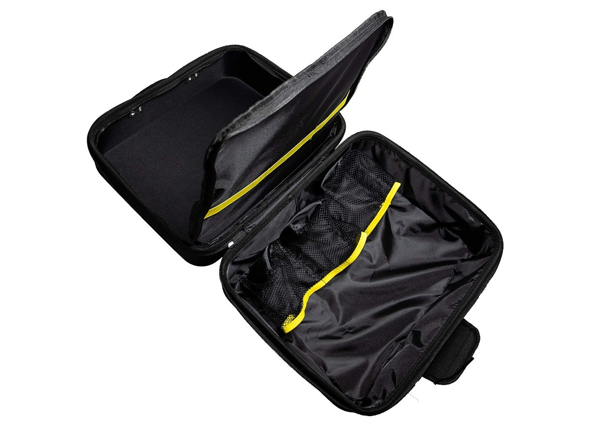 Odolná, soft shellová konštrukcia s logom na bočnej strane zaujme veľmi elegantným a luxusným vzhľadom. Vnútorný priestor má tri sieťové držiaky na produkty a tri elastické pásky, ktoré bezpečne zaistia prípravky v taške. Uprostred tašky je navyše segment, ktorý oddelí produkty od ďalšieho príslušenstva, a vy tak budete mať všetko na pravidelnú údržbu svojho auta kedykoľvek pri sebe. Samozrejmosťou je nastaviteľný popruh cez rameno, ktorý skvele dopĺňa držadlo na hornej strane tašky pre ľahkú manipuláciu a prenášanie.