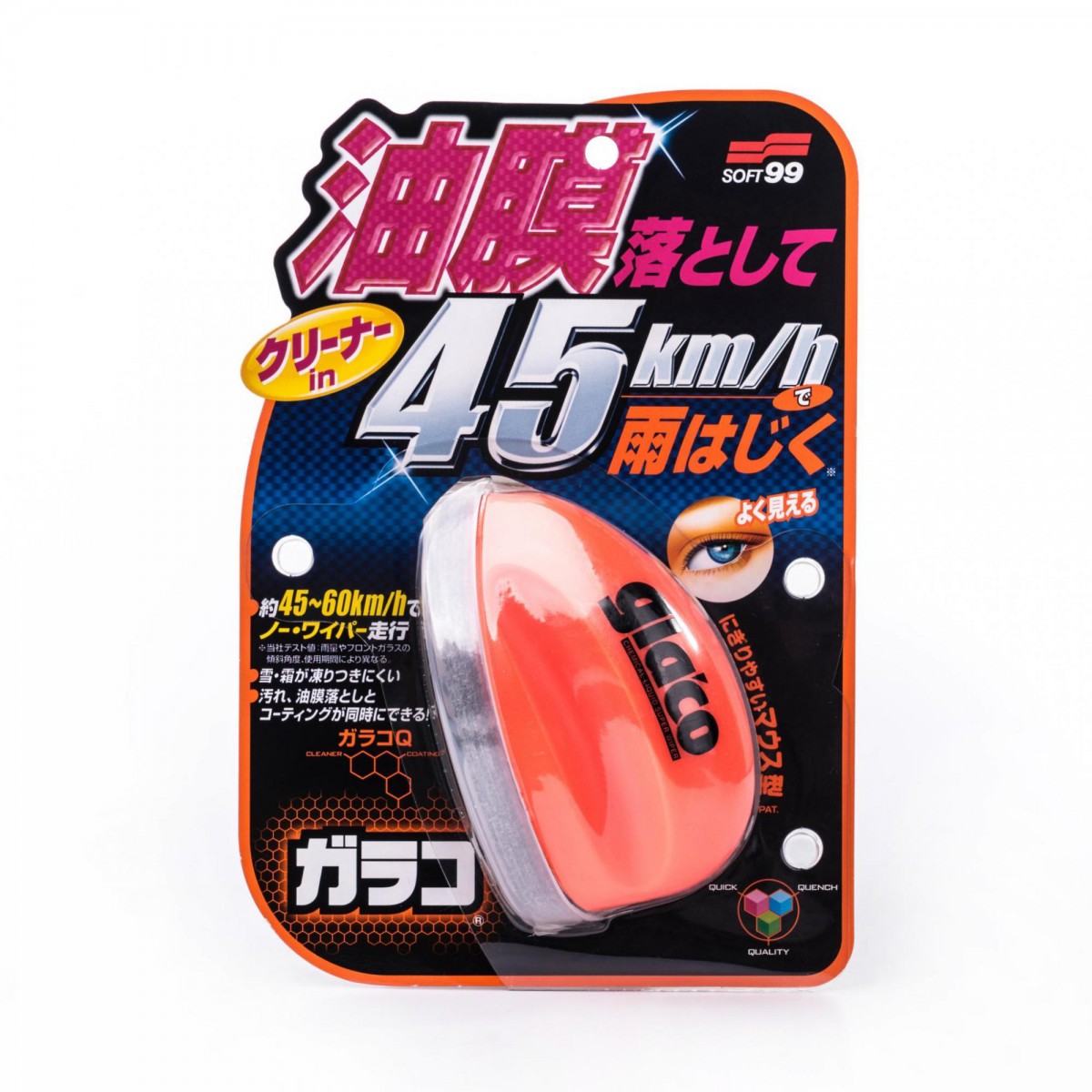 Glaco Q je výborný kombinovaný prípravok, ktorý v jednom kroku hĺbkovo vyčistí okná a zároveň nanesie tekuté stierače s veľmi vysokou účinnosťou. Obsahuje čističe, ktoré odstraňujú usadeniny z tvrdej vody a mastný film, ktorý inak zhoršuje viditeľnosť aj účinnosť a životnosť tekutých stieračov. Odpadá potreba prípravy (hĺbkového vyčistenia) skla pred aplikáciou tekutých stieračov Soft99. Aplikácia je veľmi rýchla a jednoduchá, trvá cca 1/3 času potrebného na nanesenie – oproti konkurenčným prípravkom. Glaco Q sa dodáva v typickej oranžovej nádobke vybavenej veľkým aplikátorom a nasadzovacím krytom na čisté a bezpečné skladovanie. Nádobka sa dobre drží a aplikátor v tvare žehličky uľahčuje precíznu aplikáciu v rohoch. Prípravok sa ľahko nanáša aj rozlešťuje a netvorí absolútne žiadne šmuhy (na rozdiel od mnohých lacných výrobkov). Nevyžaduje zrenie a funguje ihneď po nanesení. V závislosti od sklonu čelného okna umožňuje Glaco Q jazdu bez stieračov už od 45 km/hod. Trvanlivosť jednej aplikácie je zhruba 3 mesiace.