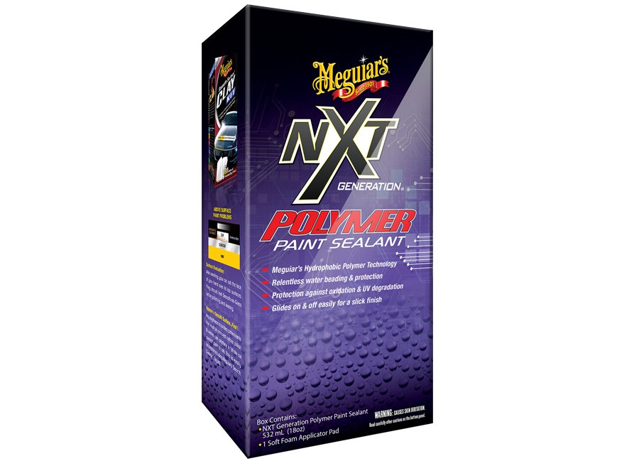 Meguiar's NXT Polymer Sealant je úplne nový produkt pre ochranu laku, využívajúci najmodernejšiu polymérovú technológiu. Vysoko odolné, hydrofóbne zloženie je zamerané na dlhodobú ochranu všetkých lakovaných povrchov. Meguiar's NXT Polymer Sealant je vhodný pre všetky farby lakov, avšak najlepší efekt dosiahnete na svetlých lakoch, kde je najvyššou prioritou ochrana a hydrofóbny (vodoodpuzujúci) efekt. Balenie naviac obsahuje penový aplikátor na nanášanie vosku v limitovanom fialovom prevedení, dostupným výhradne v sade s týmto voskom. Technológia syntetických polymérov predstavuje najodolnejší a najľahšie aplikovateľný spôsob dlhodobej ochrany laku. Vďaka intenzívnemu výskumu a testovaniu ponúkajú polyméry ochranu, ktorá presahuje odolnosť všetkých typov prírodných voskov (napr. karnaubského, včelieho či lanolínu).