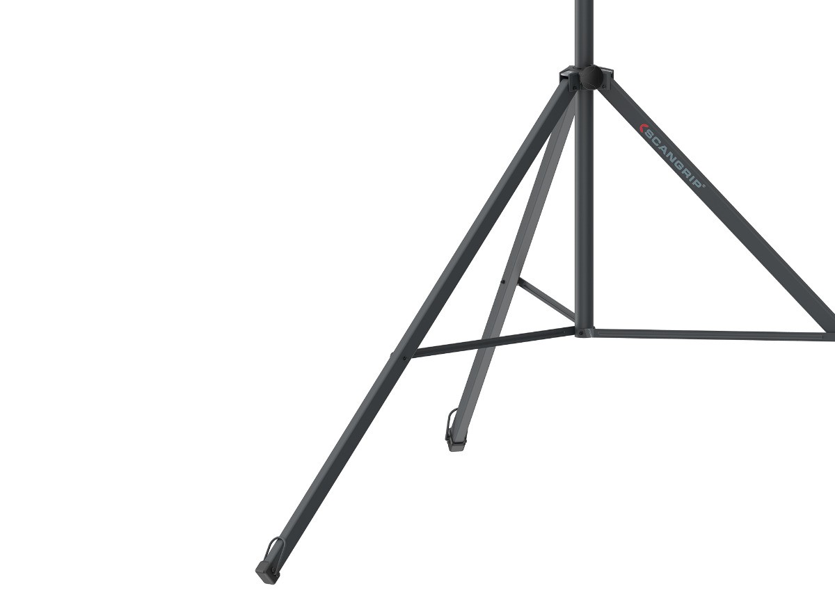 SCANGRIP TRIPOD 4,5 m bol navrhnutý, aby spĺňal všetky nároky pri práci, pri ktorej je polohovateľné a premiestniteľné osvetlenie nevyhnutnou súčasťou. Výšku stojana môžete nastaviť od 220 cm do 450 cm! Vďaka tomu ponúka SCANGRIP TRIPOD 4,5 m neobmedzené možnosti nastavenia svetla, a tým vylepšenie svetelných podmienok pre každú prácu. Stojan je vyrobený z práškovo lakovanej ocele a horné oceľové uchytenie so závitom s priemerom 10 mm zaistí odolnosť a dlhú životnosť. Pokiaľ statív nepoužívate, môžete ho jednoducho zložiť. Vďaka zosilnenej konštrukcii môžete stojan SCANGRIP TRIPOD 4,5 m používať v interiéri aj vonkajšom prostredí. Každá noha stojana má bezpečnostný klip, do ktorého môžete uchytiť káble od svetiel, aby ste zaistili úplne bezpečnú a bezproblémovú prácu. Stojan SCANGRIP TRIPOD 4,5 m môžete používať so svetlami SITE LIGHT 30 a SITE LIGHT 60.