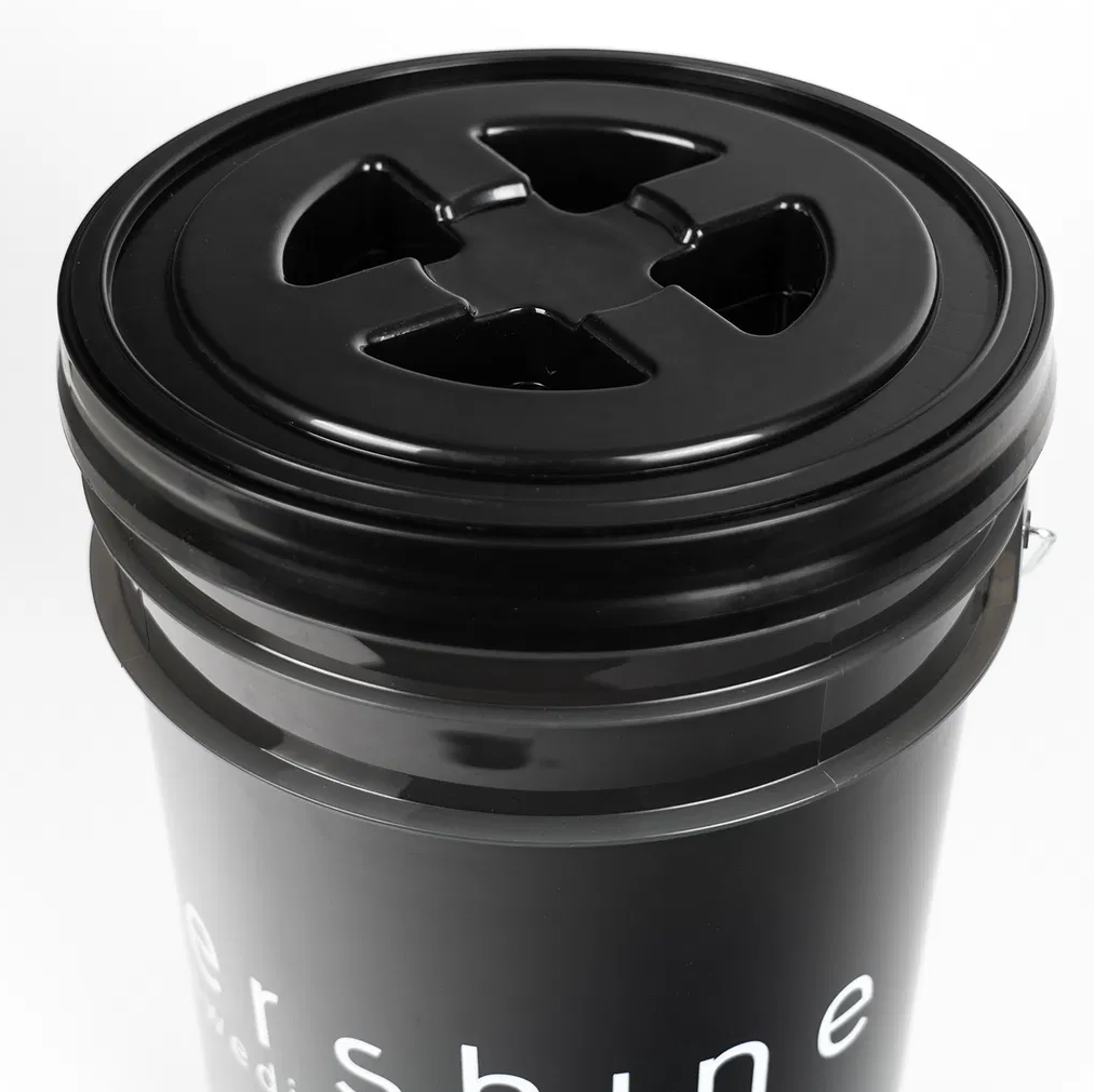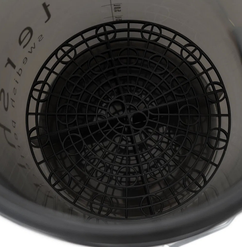 Tershine Wash Bucket je robustné vedro, ktoré pojme niečo málo cez 18 litrov. Má efektné dymové tónovanie plastu, takže hneď uvidíte, koľko vody vo vedre zostáva. Grid guard mriežka a vodotesné veko sú súčasťou balenia, rovnako ako tlačené logo Tershine a miery v litroch na boku.