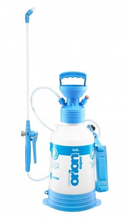 Široká škála kapacít postrekovačov od 3 l do 12 l vám umožňuje zvoliť správne zariadenie podľa vašich potrieb. Postrekovače Orion Pro+ sú navrhnuté na prácu na stredných a veľkých plochách. Sú ideálne na dezinfekciu rôznych typov povrchov, na prácu v automobilových umývačkách, dielňach a v rôznych odvetviach priemyslu. Postrekovače Orion Pro+ používajú tesnenie z materiálu Viton. Vďaka tomu sa vyznačujú zvýšenou odolnosťou voči agresívnym chemickým činiteľom. Jednoduchý a osvedčený dizajn umožňuje ľahkú výmenu tesnenia. Nádoba postrekovača je vybavená stabilizačnou základňou, vďaka ktorej je rozprašovač veľmi stabilný. Základňa izoluje nádrž od zeme a chráni ju pred poškodením spôsobeným prípadným pádom. Na nádrži sa nachádza mierka, ktorá umožňuje jednoduchú prípravu pracovného roztoku. Nádrž nemá technologické otvory, čo priamo ovplyvňuje jeho trvanlivosť a bezpečnosť pri práci. Bezpečnostný ventil chráni zariadenia a užívateľov. Špirálová tryska je vyrobená z mechanicky a chemicky odolného kompozitu zo sklenených vlákien. Na rukoväti trysky sa nachádza tlakomer, ktorý riadi tlak vo vnútri postrekovača. Tryska postrekovača je zakončená regulovateľnou tryskou, ktorá umožňuje dosiahnuť požadovaný stupeň rozprašovania. Transportná lišta umožňuje pohodlné používanie postrekovača.