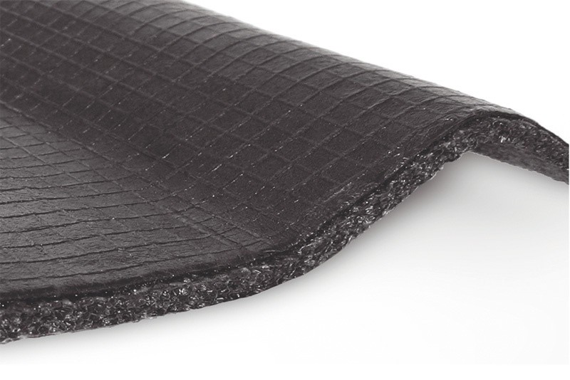- tlmiaci materiál sa skladá z vrstvy penového polyetylénu a horné tvrdené vrstvy polymér-bitúmen