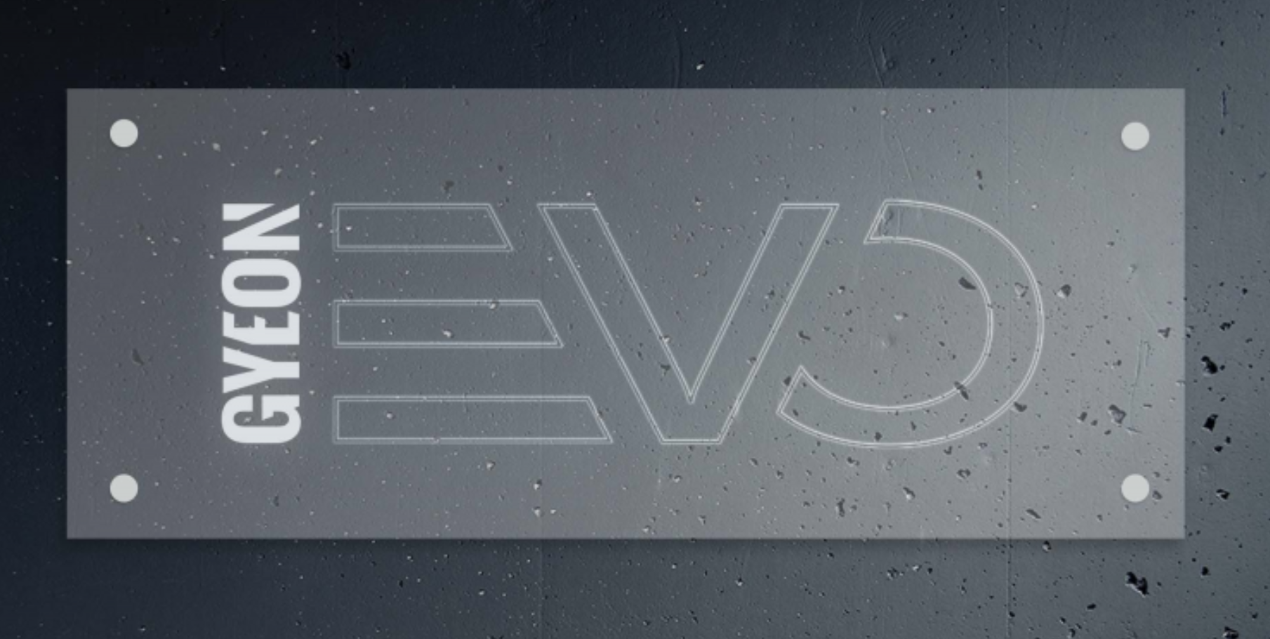Priehľadný LED panel s rozmermi 100 x 40 cm, ktorý sa zavesí do detailingovej dielne a jasne ukazuje, že daný detailer pracuje so špičkovou autokozmetikou Gyeon EVO.