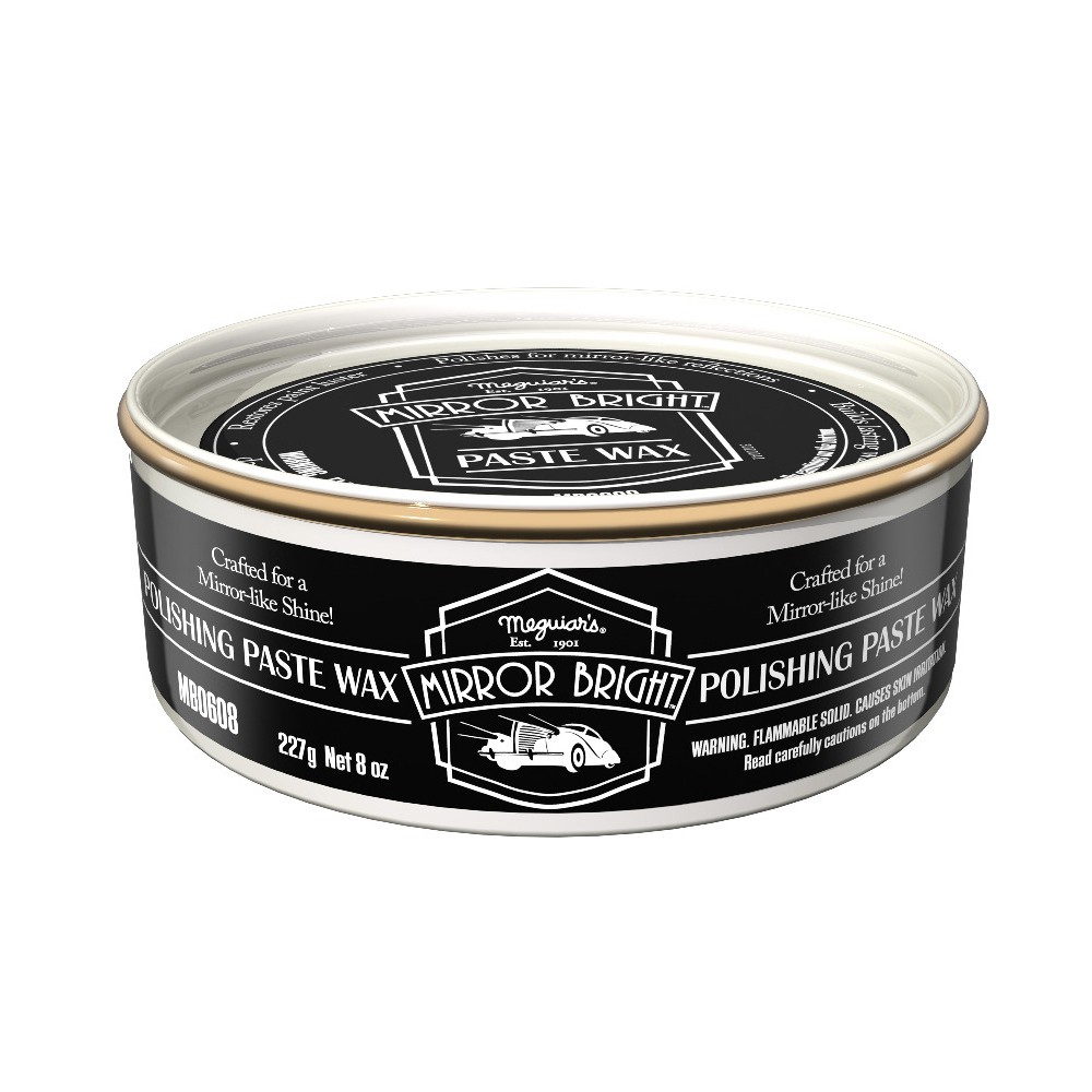 Meguiar's Mirror Bright™ Polishing Paste Wax jemne leští všetky lakované povrchy do maximálneho lesku, hĺbky a sýtosti farieb. Unikátna zmes prírodných a syntetických zložiek poskytuje fantastickú voskovú ochranu, ktorá uzamkne lesk na dlhú dobu. Je bezpečný pre všetky druhy lesklých lakov, nástrekov a náterov na všetkých typoch povrchov. Meguiar's Mirror Bright Polishing Paste Wax je kombináciou leštidla a vosku. V jednom jednoduchom kroku odstránite ľahké až stredné defekty laku (kruhové škrabance, hologramy, oxidáciu), rozjasníte lak a maximalizujete jeho lesk vďaka exkluzívnym leštiacim olejom. Vytvoríte odolnú voskovú vrstvu, ktorá ochráni lak na dlhú dobu. Zloženie Meguiar's Mirror Bright Polishing Paste Wax v sebe kombinuje zmes prírodnej karnauby a syntetických polymérov, ktoré vás prekvapia výdržou na povrchu laku.Tipy pre leštenie a ochranu laku pomocou Meguiar's Mirror Bright Polishing Paste Wax