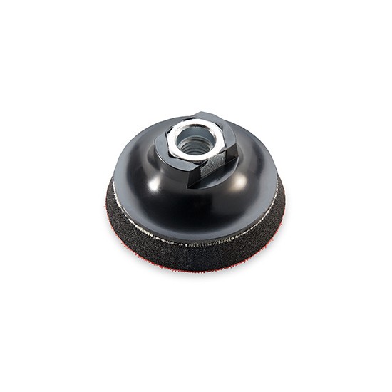 Unášací tanier na suchý zips, tlmený, M 14, priemer 75 mm. 12 mm bunkového kaučuku sa postará o rovnomerné rozdelenie tlaku pri leštení a pečatení.