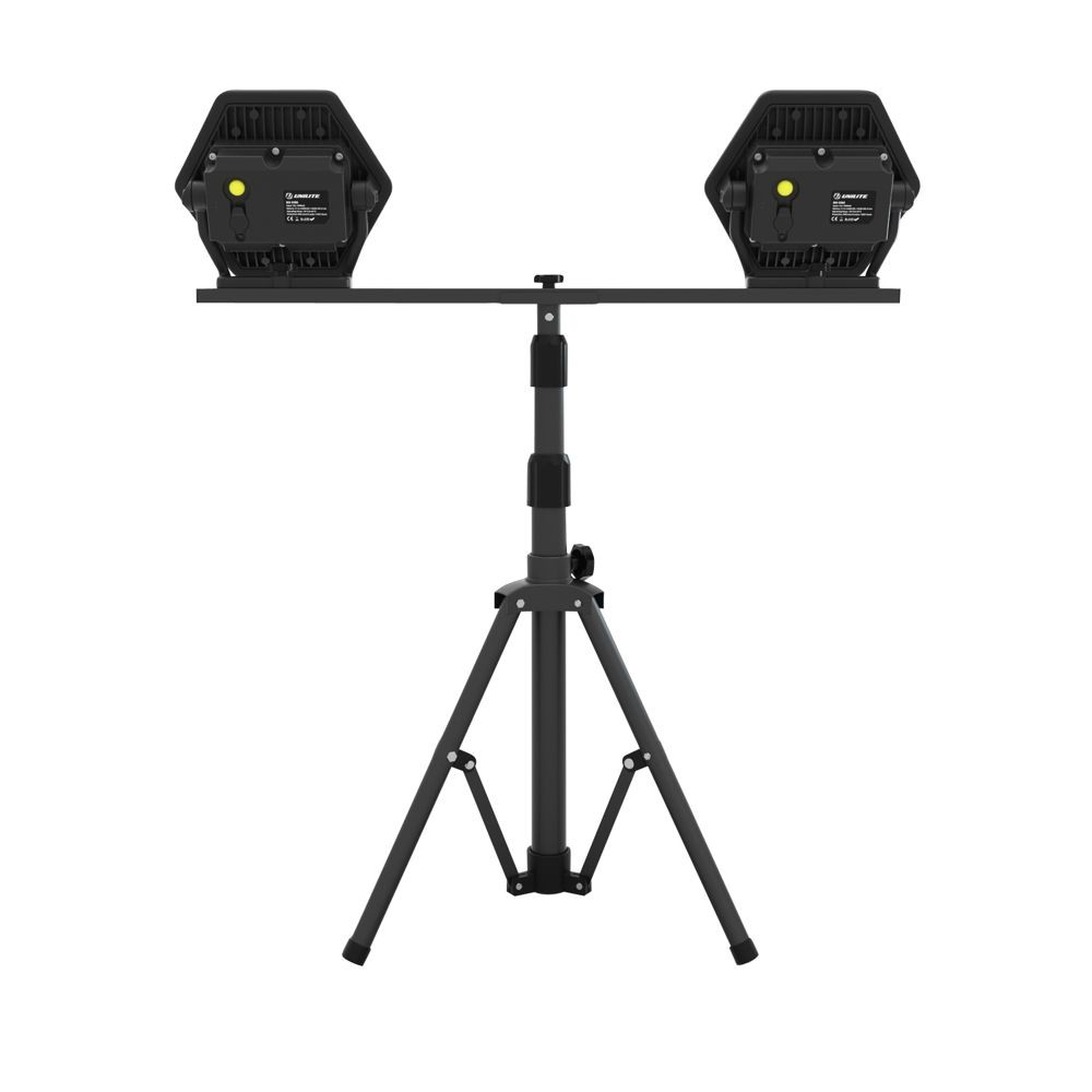 Unilite Double Head Tripod od Unilite je pevný statív pre dva pracovné svetlomety, ktorý slúži na držanie dvoch šesťuholníkových svetiel Unilite (SLR-1300, CRI-2300, SLR-2500 alebo SLR-4750). Statív je vyrobený z tvrdeného leteckého hliníka a má na každej nohe silné plastové stabilizačé misky pre dokonalú stabilitu. Statív má výsuvný výškový rozsah od 0,7 do 1,7 m s jednoduchými nastaviteľnými krúžkami. Hexagonálne svetlá je možné priskrutkovať priamo do hornej časti statívu pre stabilné pripevnenie, alebo alternatívne je statív dodávaný s extra držiakom, ktorý sa pripevňuje na hornú časť statívu a umožňuje jednoduché pripevnenie šesťuholníkového svetelného zdroja Unilite bez nutnosti použitia pre skrutky, čo uľahčuje demontáž a následnú manévrovateľnosť.
