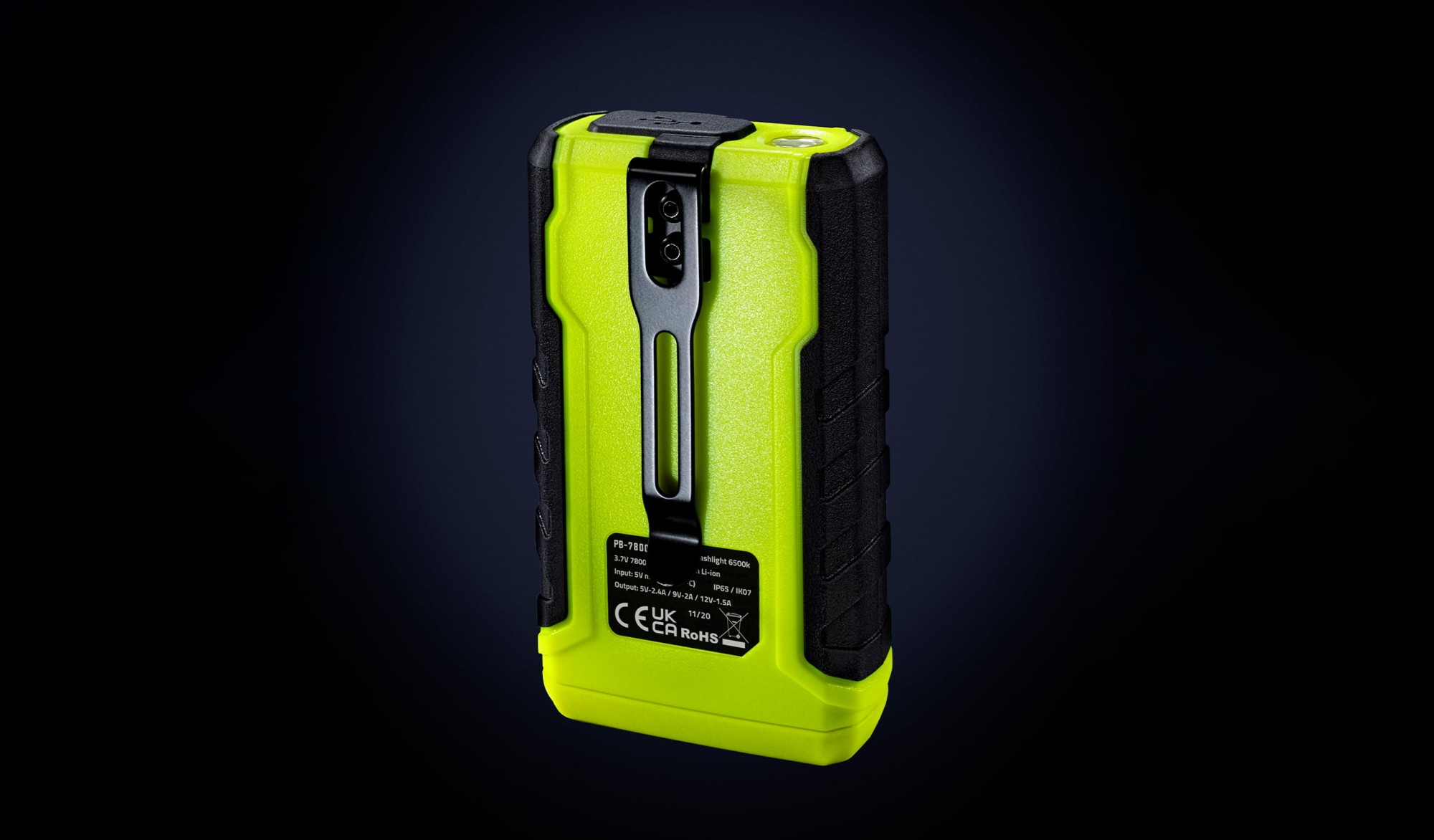 PB-7800 je praktická SMD LED baterka s 250 lúmenmi a vysokokapacitnou 7800mAh li-ion powerbankou. Má pevné telo z nylonu a TPR. Plne odolné puzdro voči poveternostným vplyvom má stupeň krytia IP65 proti prachu a vode, odolnosť proti nárazom IK07 a odolnosť proti pádu z výšky 2 m. Jej adaptívna batéria má viacero výstupov 5 V 2,4 A / 9 V 2 A / 12 V 1,5 A, ako aj ochranu proti prebitiu, preťaženiu, hlbokému vybitiu a skratu. Silná magnetická základňa a robustný vreckový klip zabezpečujú maximálne využitie.