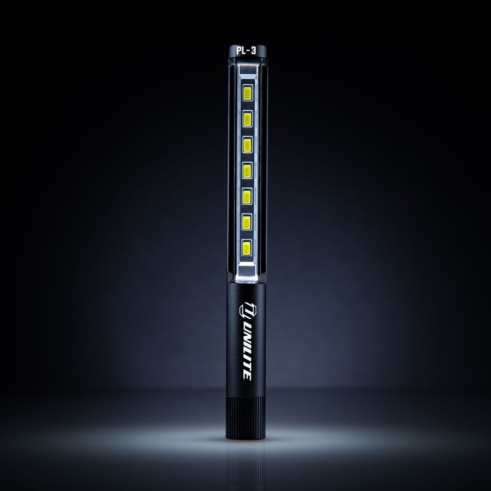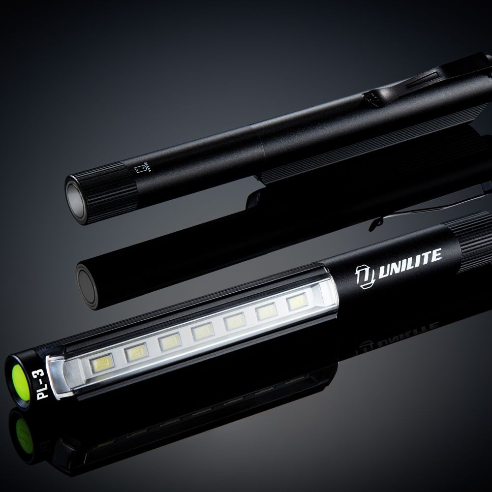 Unilite PL-3 je kompaktné svietidlo vyrobené z tlakovo liatej hliníkovej zliatiny. Produkuje 275 lúmenov bieleho svetla na najvyššej úrovni z vysoko výkonných SMD LED diód. K dispozícii sú tri svetelné režimy, ktoré sa cyklicky prepínajú v poradí: vysoký, stredný, nízky a vypnutie rýchlym stlačením fluorescenčného pogumovaného mikrospínača, ktorý je umiestnený na hornom konci svietidla. Pokiaľ je v akomkoľvek režime dlhšie ako 3 sekundy, ďalším stlačením zhasne. PL-3 má niekoľko spôsobov použitie bez nutnosti držať svietidlo v ruke. Na zadnej strane má silný magnet, ktorý je ideálny na prácu na aute alebo v dielni, môže sa tiež pripevniť k oblečeniu alebo batohu pomocou hliníkovej sponky na vrecká, čo je užitočné pri prenášaní.