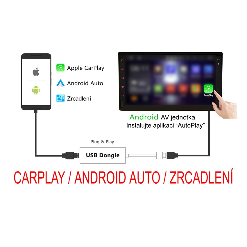 Bezdrôtové CarPlay a Android Auto adaptéry Univerzálny modul Apple CarPlay / Android Auto / zrkadlenie pre AV jednotky s operačným systémom Android alebo Windows CE