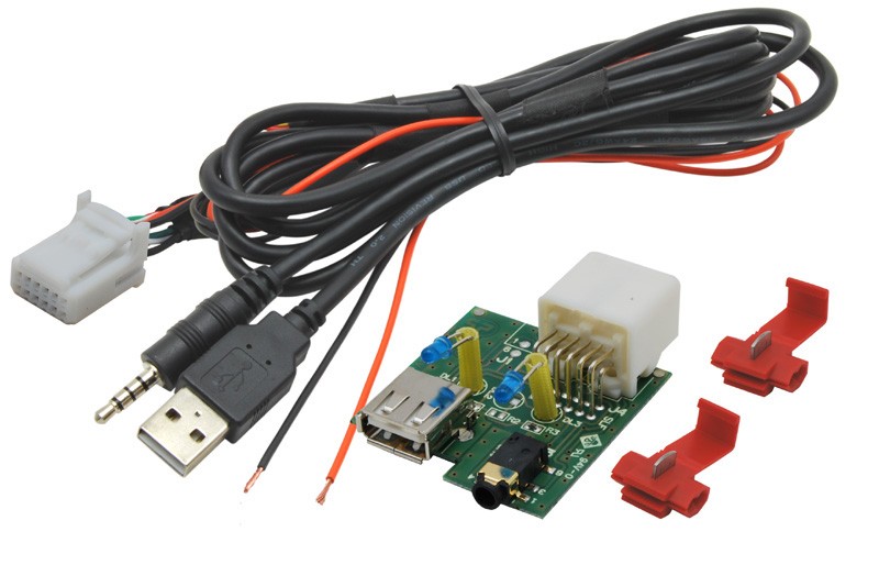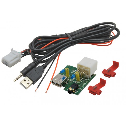- Adaptér na pripojenie USB a AUX signálu, nahrádza pôvodný konektor v automobile pri použití aftermarket (dodatočne) inštalovaného autorádia.