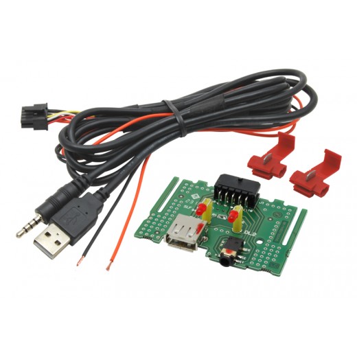 - Adaptér na pripojenie USB a AUX signálu, nahrádza pôvodný konektor v automobile pri použití aftermarket (dodatočne) inštalovaného autorádia.