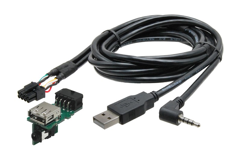 - Adaptér na pripojenie USB a AUX signálu, nahrádza pôvodný konektor v automobile pri použití aftermarket (dodatočne) inštalovaného autorádia.