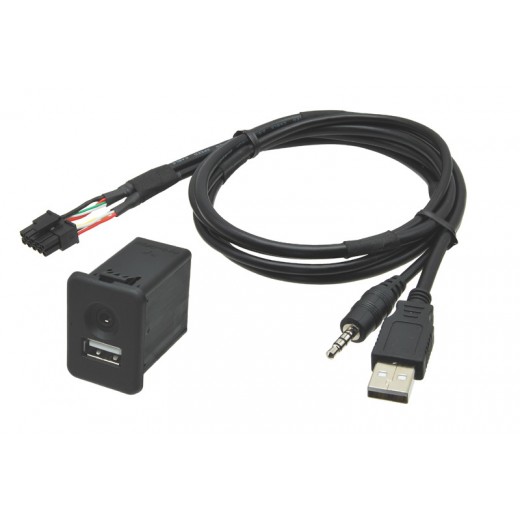 - Adaptér na pripojenie USB a AUX signálu, nahrádza pôvodný konektor v automobile pri použití aftermarket (dodatočne) inštalovaného autorádia.