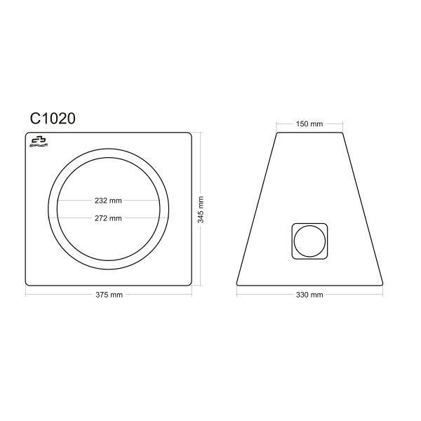 - Rozmery ozvučnice: 375 mm (šírka) x 345 mm (výška) x 330/150 mm (hĺbka)
