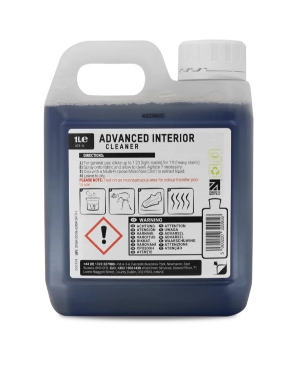 Advanced Interior Cleaner je rýchlo pracujúci čistič, ktorý zvládne aj tie najhoršie škvrny v interiéri vášho vozidla. Jeho pH neutrálne zloženie je na bezpečné použitie ideálne. Čistič obsahuje čistiace zložky, ktoré sú ľahko biologicky odbúrateľné. Hoci je špeciálne vyvinutý pre bezpečnú prácu na všetkých interiérových látkach v aute, funguje dobre aj na tvrdých povrchoch interiéru vozidla, ako sú plasty alebo obloženia. Vďaka ľahkej citrusovej vôni zanechá tento výrobok na koberci a čalúnenie vášho vozidla sviežu vôňu a nelepivú povrchovú úpravu. Odporúčame riediť v pomere 1:80, ak je výrobok používaný v stroji na čistenie kobercov.