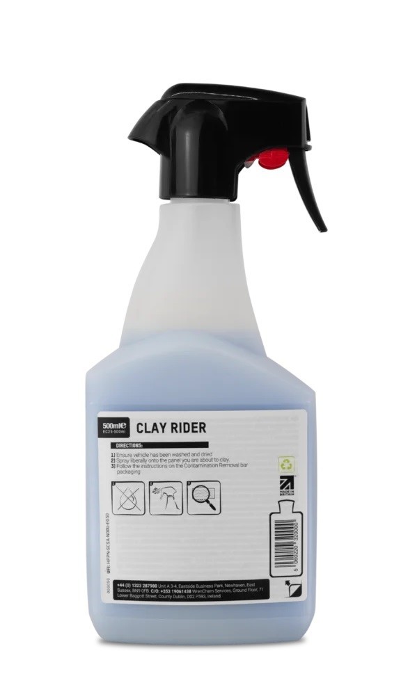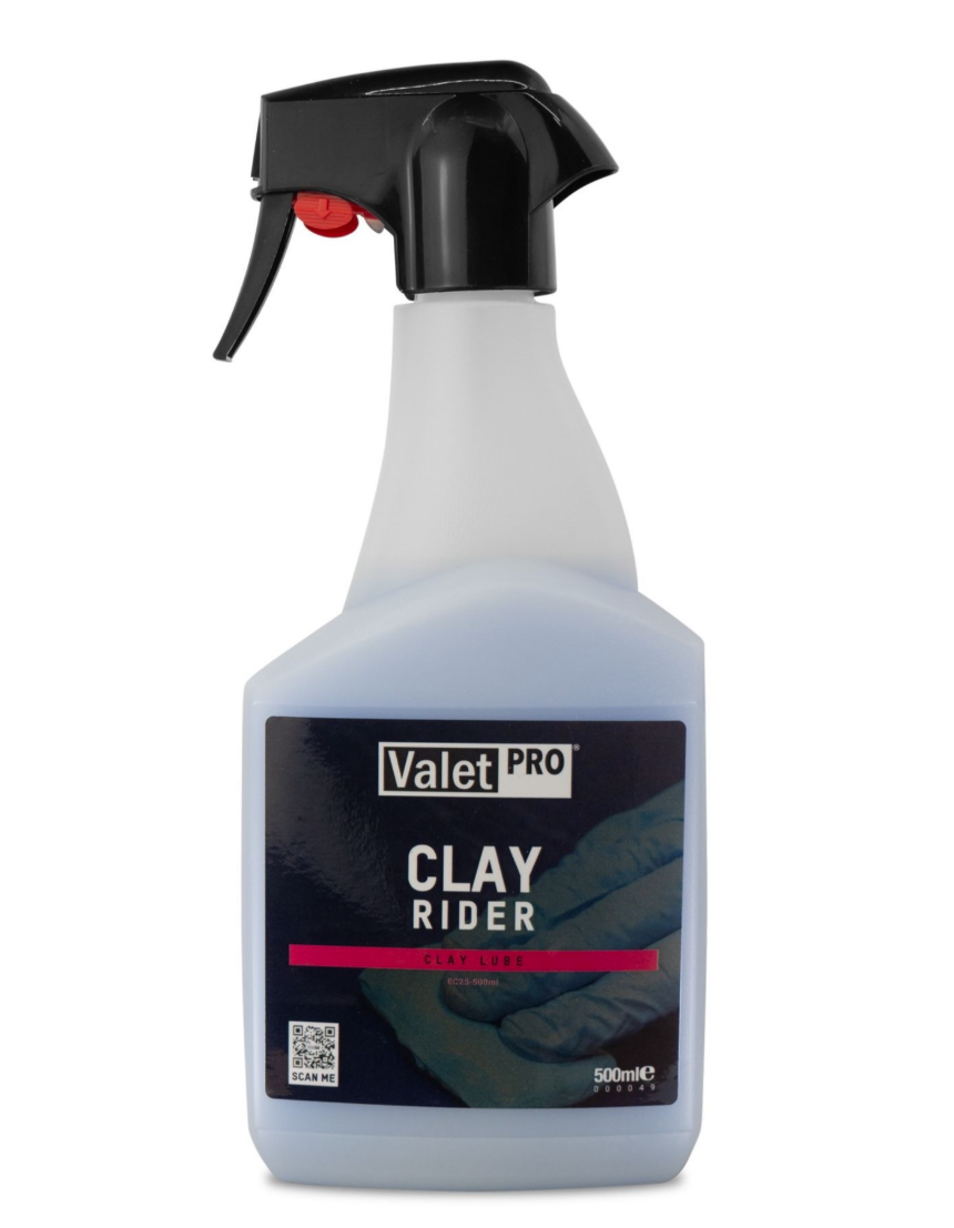 ValetPro Clay Rider je lubrikant na prácu s clayom, ktorý zaisťuje hladké kĺzanie claya po laku vozidla. Umožňuje jemné odstránenie nečistôt z lakovaného povrchu a zároveň znižuje riziko poškodenia laku počas používania claya. Pomáha dokonalej príprave laku, ktorá je nevyhnutná pred aplikáciou vosku alebo inej ochrannej vrstvy laku.
