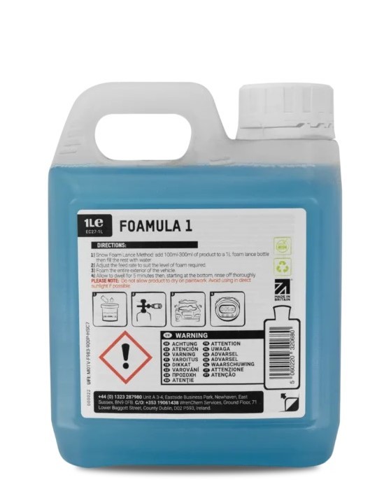 Foamula 1 je vysoko výkonná snehová pena s neutrálnym pH, ktorá poskytuje skutočnú všestrannosť akémukoľvek predumytiu vozidla. Koncentrované zloženie poskytuje ultra silnú penu a fantastickú čistiacu silu pri nižšom riedení. Môže byť použitá s penovým nadstavcom alebo rozprašovačom. Foamula je šetrná k voskom a keramickému povlaku. Príjemná vôňa jabĺk.