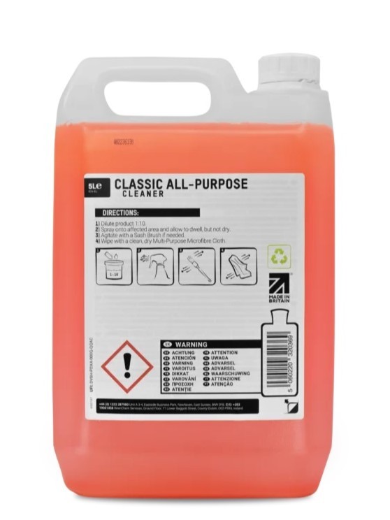 ValetPRO Classic All Purpose Cleaner je skvelý univerzálny čistič, ktorý patrí vôbec k tým najobľúbenejším. Používa sa na plasty v interiéri, čistenie škvŕn na čalúnenie a pod. Rozpúšťa špinu, ktorá sa potom ľahko čistí, odstraňuje nečistoty z plastového povrchu a pod. Classic All Purpose Cleaner poskytuje skvelý výkon za výhodnú cenu. Vynikajúci pri použití v interiéri aj exteriéri.