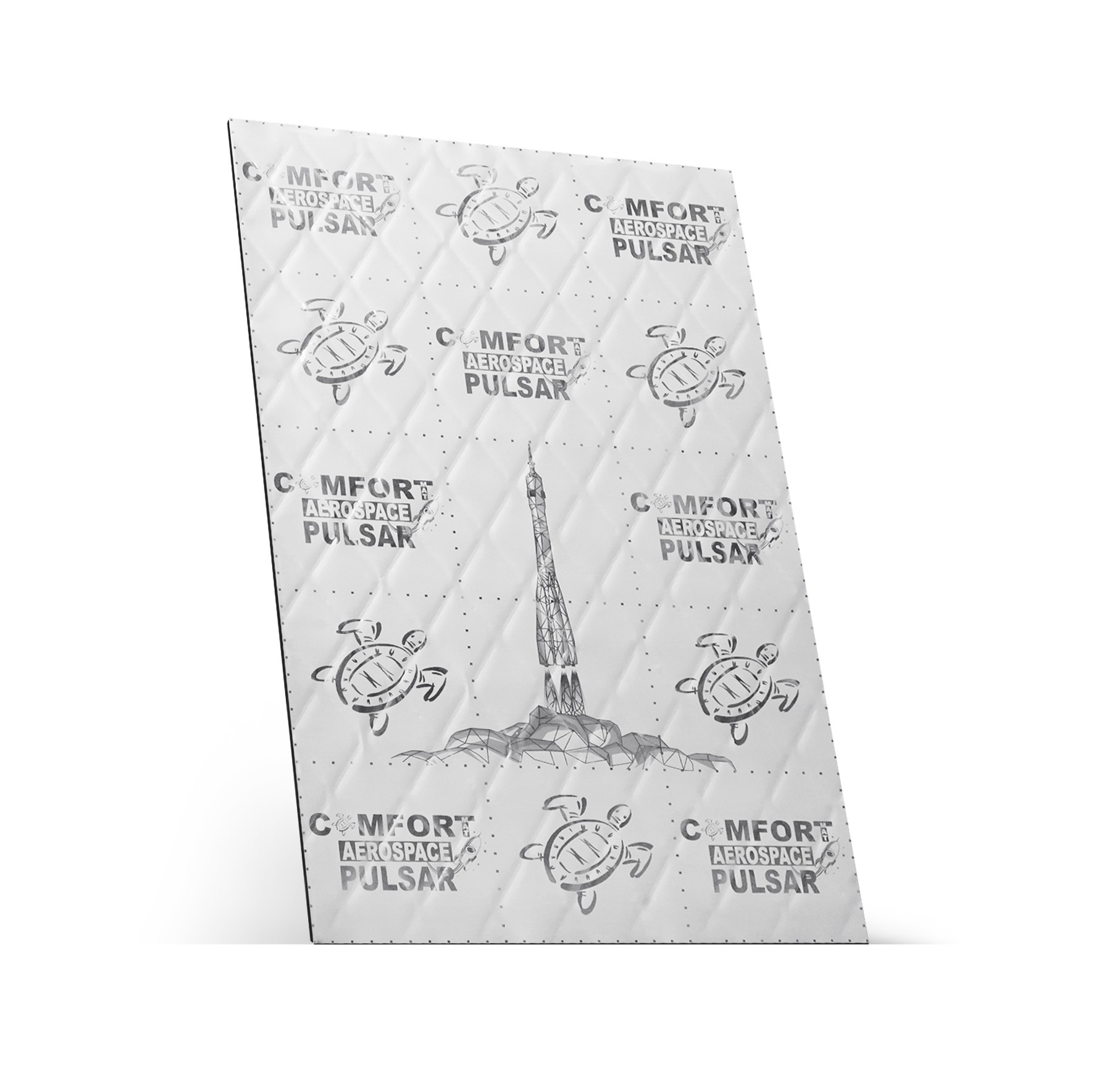 Comfortmat Pulsar je univerzálny vibroakustický materiál z nového radu Aerospace, ktorý prepája účinné antivibračné vlastnosti s pokročilou schopnosťou zvukovej izolácie. Táto kombinácia v jedinej vrstve výrazne zjednodušuje aplikáciu a prináša vysoký účinok s minimálnou pridanou hmotnosťou. Pulsar má hrúbku 5 mm a dosahuje akustického stratového činiteľa (MLF) 0,45, čo zodpovedá špičkovým antivibračným materiálom. Použitie pokročilej vibroakustickej vrstvy so spenenými granulami prináša vysokú účinnosť bez nutnosti masívneho zaťaženia karosérie, vďaka čomu je ideálnym riešením pre miesta so strednou až vyššou záťažou vibráciami aj hlukom – typicky dvere, strecha, dno batožinového priestoru alebo blatníky. Pulsar zároveň výrazne znižuje rezonanciu plechov a vďaka vysokej adhéznej pevnosti okolo 15 N/cm zostáva pevne priľnutý aj v náročných podmienkach. Povrchová hliníková fólia Scale One zaisťuje rozmerovú stabilitu, chráni proti poškodeniu a zvyšuje prenos tlmiacej energie. Plošná hmotnosť 4 kg/m² predstavuje spoločne s ostatnými materiálmi radu Aerospace ideálnu voľbu pre elektromobily, športové vozidlá alebo akékoľvek aplikácie, kde je nízka hmotnosť zároveň podmienkou aj výhodou.