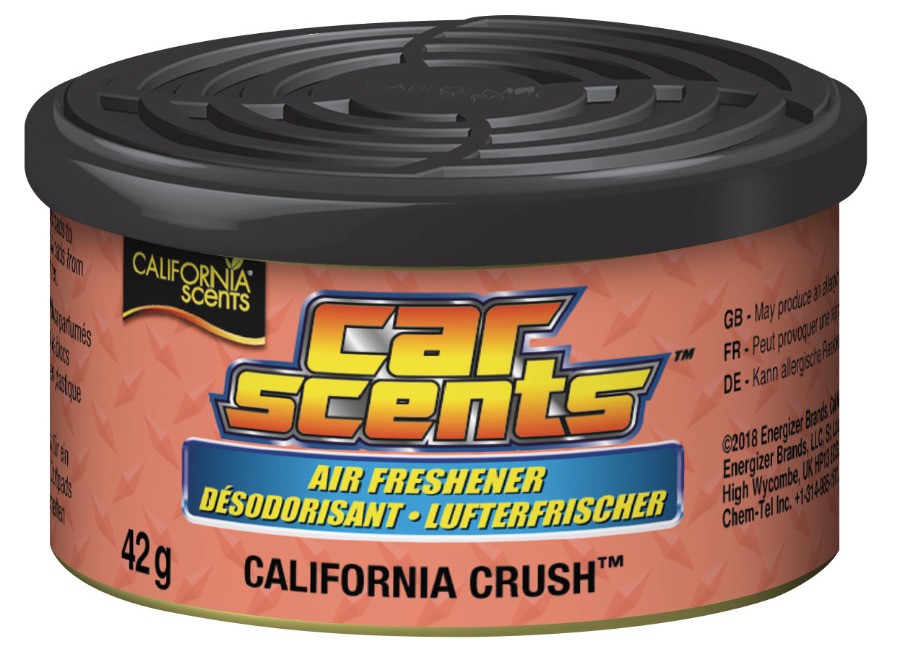 Originálny osviežovač vzduchu s pevnou náplňou v praktickej malej plechovke, ktorá rýchlo prevonia vaše auto, byt alebo kanceláriu. Súčasťou plechovky je čierne plastové viečko s otočným regulátorom, ktorým môžete meniť intenzitu vône. Zabudnite na osviežovače vzduchu a vône do automobilu, ktoré svoju intenzitu stratia po niekoľkých dňoch. Luxusné, zmyselné a intenzívne vône California Scents sú tu, aby vám dokázali, čo znamená naozaj dlhotrvajúca a príjemná vôňa v aute. Každá dóza Car Scents® obsahuje tri bloky lisovaného ľanu napusteného parfémom. Vzhľadom na pevnú konzistenciu osviežovača vzduchu California Scents nehrozí únik tekutiny, ktorá by vám mohla poleptať palubnú dosku.Prírodné a zároveň ekologické vône do auta