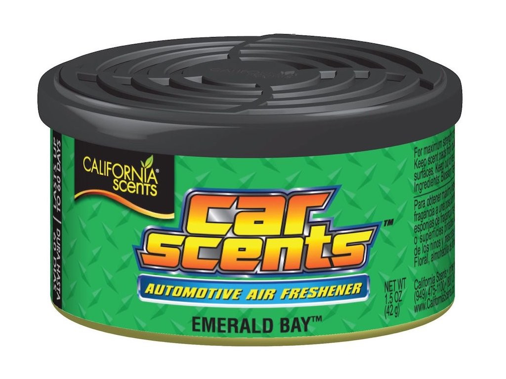 Originálny osviežovač vzduchu s pevnou náplňou v praktickej malej plechovke, ktorá pohotovo prevonia vaše auto, byt alebo kanceláriu. Súčasťou plechovky je plastové viečko s otočným regulátorom, ktorým môžete okamžite meniť intenzitu vône. Zabudnite na osviežovače vzduchu a vône do automobilu, ktoré svoju intenzitu strácajú po niekoľkých málo dňoch. Luxusné, zmyselné a intenzívne vône California Scents sú tu, aby vám dokázali, čo znamená naozaj dlhotrvajúca a príjemná vôňa v aute. Každá dóza Car Scents® obsahuje tri bloky lisovaného ľanu napusteného parfumom. Vzhľadom k pevnej konzistencii osviežovača vzduchu California Scents nehrozí ako u podobných produktov tvorených nádobkou s parfumom únik tekutiny, ktorá vám môže poleptať palubnú dosku.Prírodné a zároveň ekologické vône do auta
