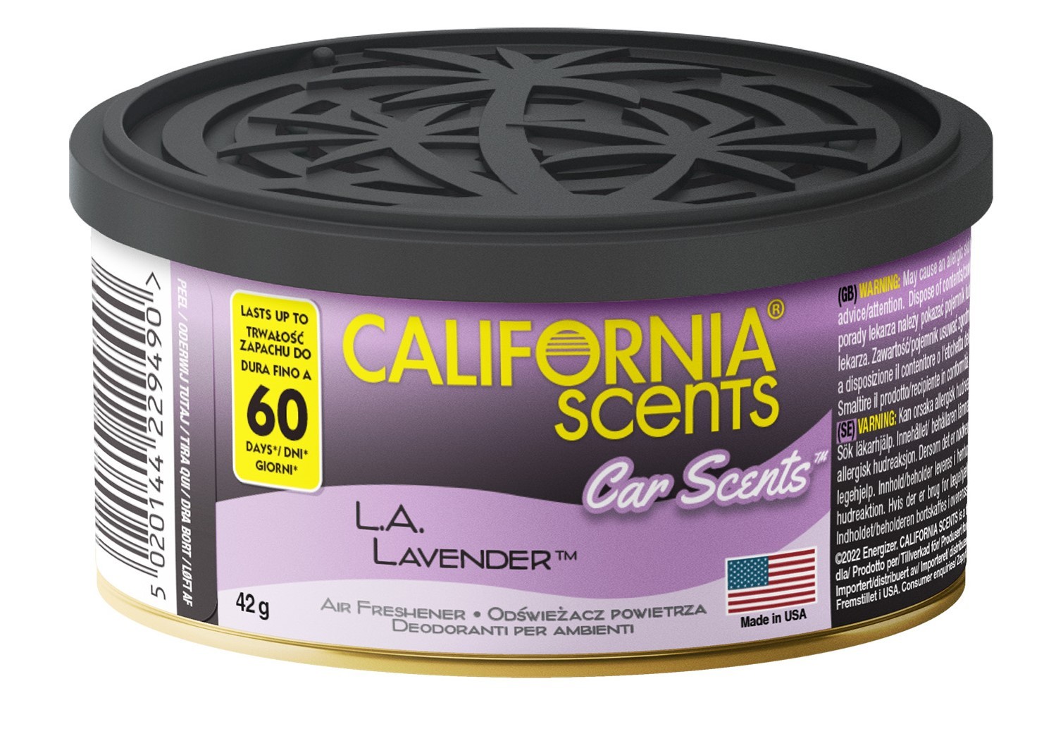 Originálny osviežovač vzduchu s pevnou náplňou v praktickej malej plechovke, ktorá rýchlo prevonia vaše auto, byt alebo kanceláriu. Súčasťou plechovky je čierne plastové viečko s otočným regulátorom, ktorým môžete meniť intenzitu vône. Zabudnite na osviežovače vzduchu a vône do automobilu, ktoré svoju intenzitu stratia po niekoľkých dňoch. Luxusné, zmyselné a intenzívne vône California Scents sú tu, aby vám dokázali, čo znamená naozaj dlhotrvajúca a príjemná vôňa v aute. Každá dóza Car Scents® obsahuje tri bloky lisovaného ľanu napusteného parfémom. Vzhľadom na pevnú konzistenciu osviežovača vzduchu California Scents nehrozí únik tekutiny, ktorá by vám mohla poleptať palubnú dosku.Prírodné a zároveň ekologické vône do auta