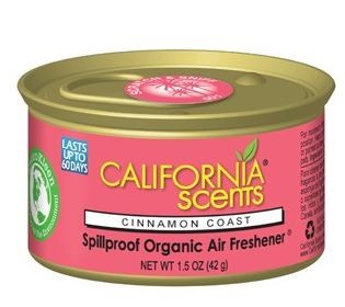 Originálny osviežovač vzduchu s pevnou náplňou v praktickej malej plechovke, ktorá pohotovo prevonia vaše auto, byt alebo kanceláriu. Súčasťou plechovky nieje plastové viečko s otočným regulátorom. Zabudnite na osviežovače vzduchu a vône do automobilu, ktoré svoju intenzitu strácajú po niekoľkých málo dňoch. Luxusné, zmyselné a intenzívne vône California Scents sú tu, aby vám dokázali, čo znamená naozaj dlhotrvajúca a príjemná vôňa v aute. Každá dóza Car Scents® Spillproof obsahuje tri bloky lisovaného ľanu napusteného parfumom. Vzhľadom k pevnej konzistencii osviežovača vzduchu California Scents nehrozí ako u podobných produktov tvorených nádobkou s parfumom únik tekutiny, ktorá vám môže poleptať palubnú dosku.Prírodné a zároveň ekologické vône do auta