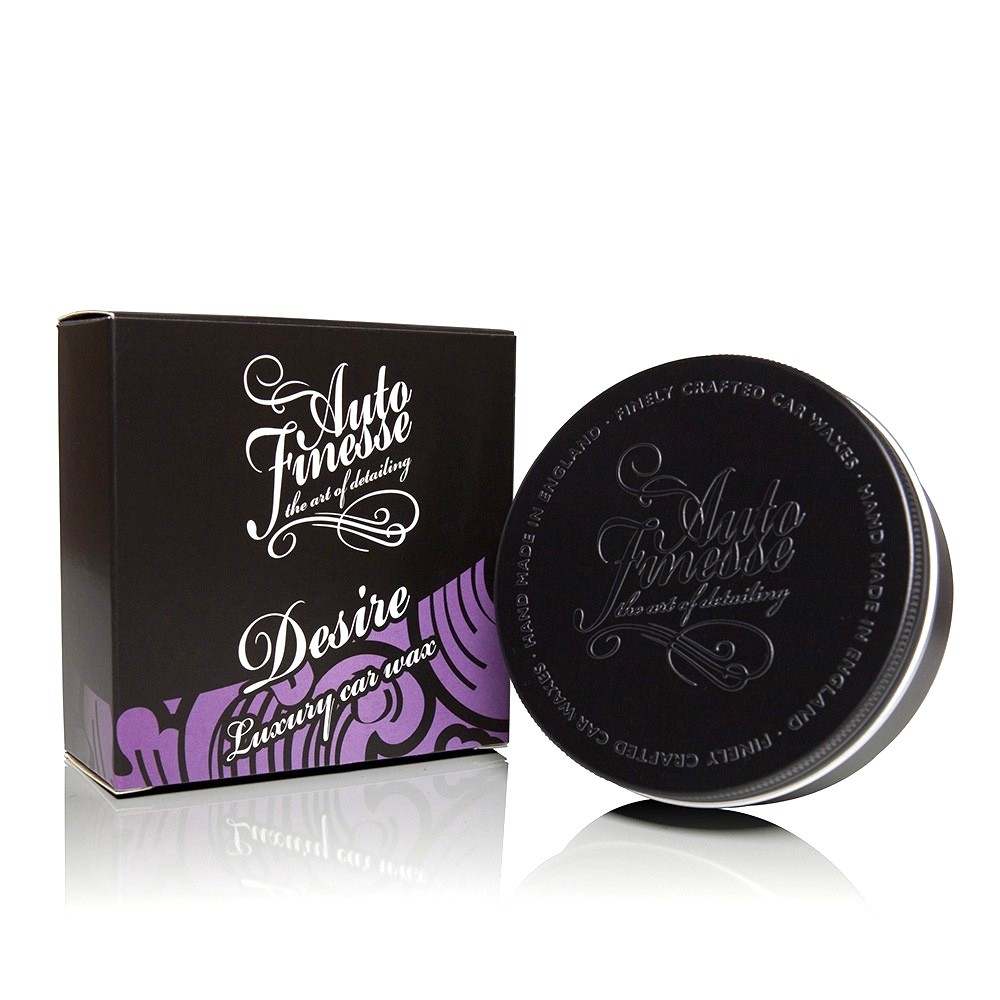 Auto Finesse Desire bol vyrobený v roku 2011 ako prémiový vosk tej najvyššej kvality, a to v obmedzenom množstve (500 ks). Vysoký dopyt a vysoká spokojnosť všetkých užívateľov ale výrobca prinútil v produkcii tohto vosku pokračovať aj naďalej. Desire vosk je ručne vyrábaný vo Veľkej Británii, kde je prísne dodržiavaný pomer pravej brazílskej sušiny karnauby a včelieho vosku. Vosky sa používajú na ošetrenie vozidla proti pôsobeniu negatívnych vplyvov prírody. Dôležitá je odolnosť proti UV žiareniu, vodoodpudivosť, odolnosť proti kyslým dažďom, vtáčiemu trusu atď. Auto Finesse Desire obsahuje 54% T1 triedy brazílskeho karnaubského vosku, pričom zostávajúci podiel je tvorený z prírodného včelieho vosku a oleja. Predstavuje skutočné synonymum hĺbky a optickej jasnosti. Obsah neprchavých súčastí vosku dodáva Desire životnosť až 6 mesiacov od aplikácie na denne používanom automobile. Perfektná vodoodpudivosť priamo núti sledovať pri daždi kvapky vody, ako sa menia na malé guličky, ktoré stekajú z automobilu bez zanechania vodného spotu. Vosky sú vhodné na použitie pre všetky druhy laku nielen na automobile, ale aj na motocykli.