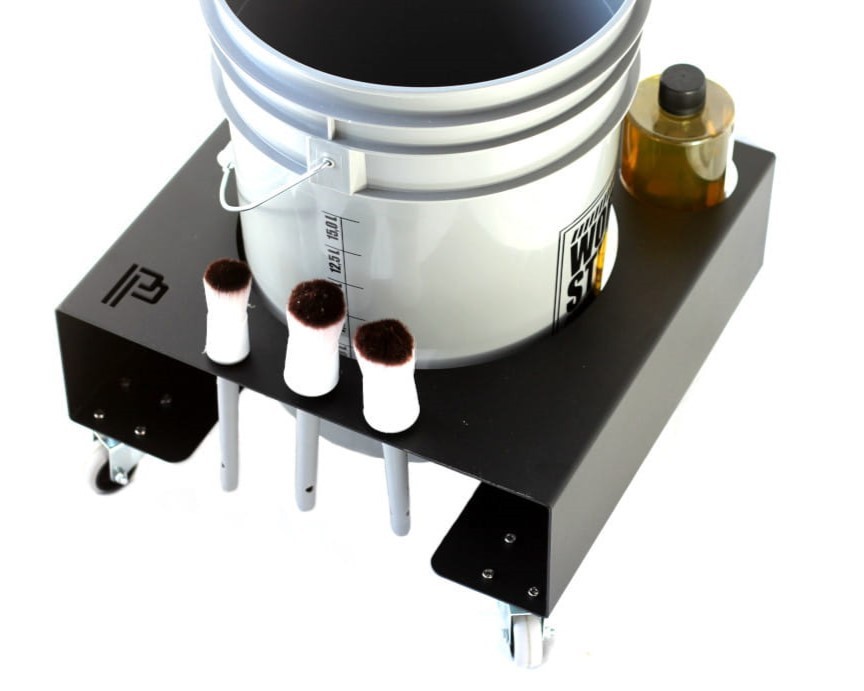 Poka Premium Detailing Bucket Trolley Rinse je masívny detailingový vozík na vedro, 2 fľaše a 3 štetce. Vozík Poka Premium je ideálny na umývanie auta, výrazne zvyšuje komfort práce a eliminuje potrebu prenášať naplnené ťažké vedro. Vozík je vyrobený z vysoko kvalitnej pozinkovanej ocele pokrytej ochrannou vrstvou práškovej farby. Nepochybnou výhodou vozíka sú špeciálne vyrobené otvory pre vedro, skladovanie fliaš s chemikáliami a 3 kefky. Konštrukcia vozíka je veľmi stabilná, zabraňuje prevrhnutiu a rozliatiu vody. Vďaka otvoru na vedro a popisu „Rinse“ si budete vždy istí, že toto vedro je na oplachovanie.
