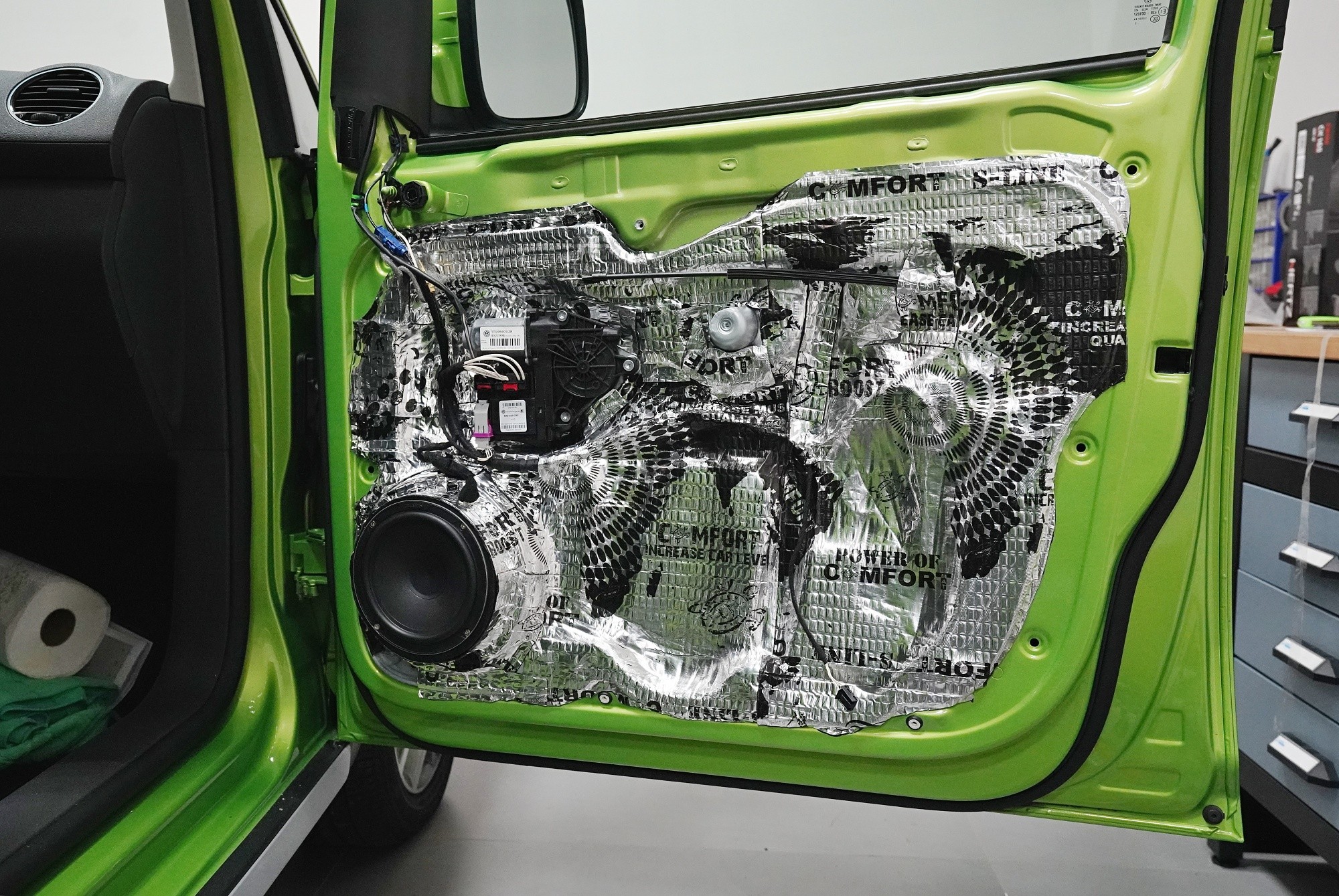 VW Caddy - výmena reproduktorov a odhlučnenie podbehov