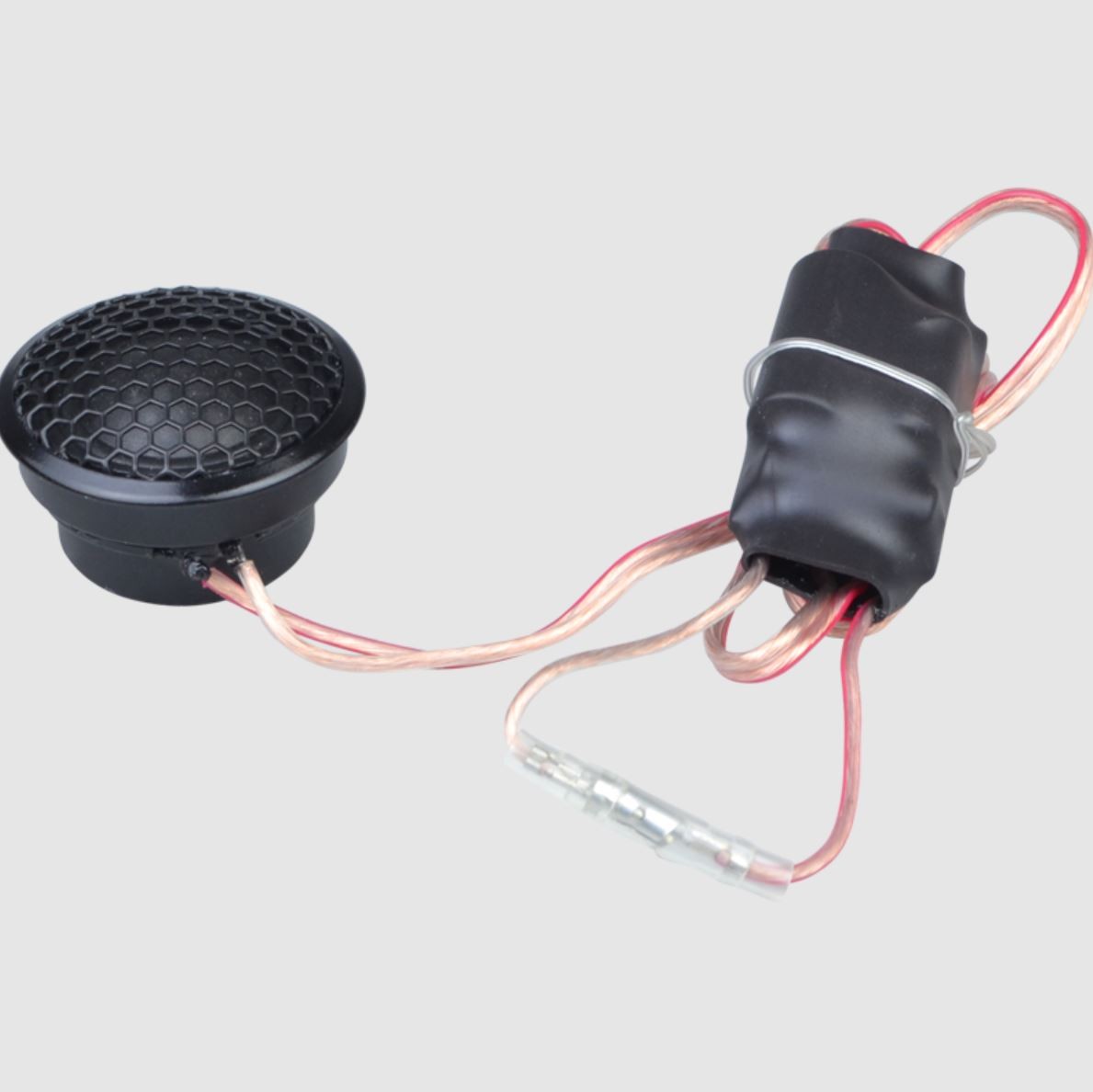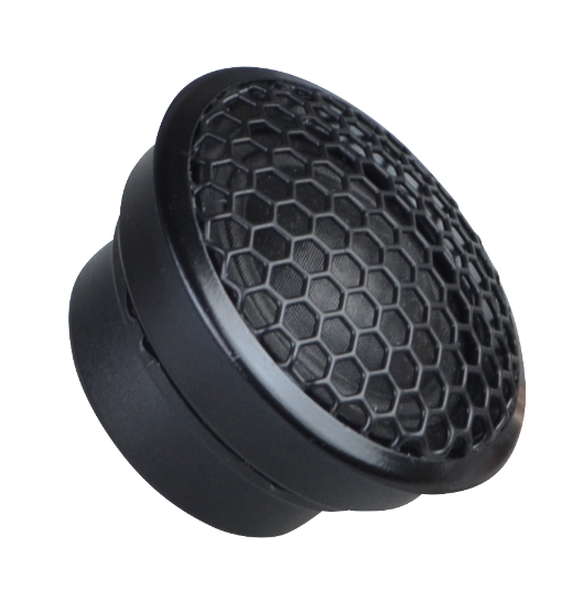 | Typy reproduktorov Koaxiálne reproduktory: Koaxiálne reproduktory sa vyznačujú konštrukciou tzv. Všetko v jednom. Výškový a stredobasový reproduktor sú v jednom koši. Výhodou je jednoduchšia montáž, ale vďaka spojeniu resp. blízkosti pásiem v jednom reproduktore, sa zvyčajne zníži kvalita zvuku. Spravidla uprostred stredobasového reproduktora, je výškový reproduktor, ktorého kmitacia cievka pracuje v druhej vzduchovej medzere spoločného magnatického obvodu. Trojpásmový koaxiálny reproduktor sa skladá zo stredobasového reproduktora, v predu na osobitnom nosníka je stredový reproduktor a samostatný výškový. Komponentné reproduktory: Komponentné reproduktory sa vyznačujú rozdelením na jednotlivé frekvenčné pásma, výškové + stredobasové + popr. basové pásmo. Jednotlivé reproduktory sa dajú umiestniť úplne oddelene, čo má za výsledok lepší zvukový aj akustický prejav. V drvivej väčšine prípadov komponentných reproduktorov je dodávaná aj externá výhybka, ktorá rozdeľuje výškové, stredové / stredobasové a u třípásma aj basové pásmo popr. umožňuje nastavenie decibelovej úrovne u výškového reproduktoru (napr. +2 dB, 0 dB, -2 dB), strmosti (napr. 6dB / okt. 12dB / okt.) či aktívne alebo bi-amp zapojenia. | Výškové |