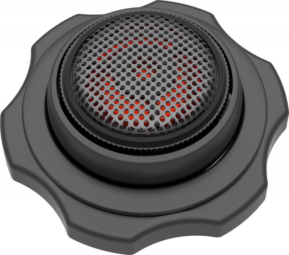 | Typy reproduktorov Koaxiálne reproduktory: Koaxiálne reproduktory sa vyznačujú konštrukciou tzv. Všetko v jednom. Výškový a stredobasový reproduktor sú v jednom koši. Výhodou je jednoduchšia montáž, ale vďaka spojeniu resp. blízkosti pásiem v jednom reproduktore, sa zvyčajne zníži kvalita zvuku. Spravidla uprostred stredobasového reproduktora, je výškový reproduktor, ktorého kmitacia cievka pracuje v druhej vzduchovej medzere spoločného magnatického obvodu. Trojpásmový koaxiálny reproduktor sa skladá zo stredobasového reproduktora, v predu na osobitnom nosníka je stredový reproduktor a samostatný výškový. Komponentné reproduktory: Komponentné reproduktory sa vyznačujú rozdelením na jednotlivé frekvenčné pásma, výškové + stredobasové + popr. basové pásmo. Jednotlivé reproduktory sa dajú umiestniť úplne oddelene, čo má za výsledok lepší zvukový aj akustický prejav. V drvivej väčšine prípadov komponentných reproduktorov je dodávaná aj externá výhybka, ktorá rozdeľuje výškové, stredové / stredobasové a u třípásma aj basové pásmo popr. umožňuje nastavenie decibelovej úrovne u výškového reproduktoru (napr. +2 dB, 0 dB, -2 dB), strmosti (napr. 6dB / okt. 12dB / okt.) či aktívne alebo bi-amp zapojenia. | Výškové |