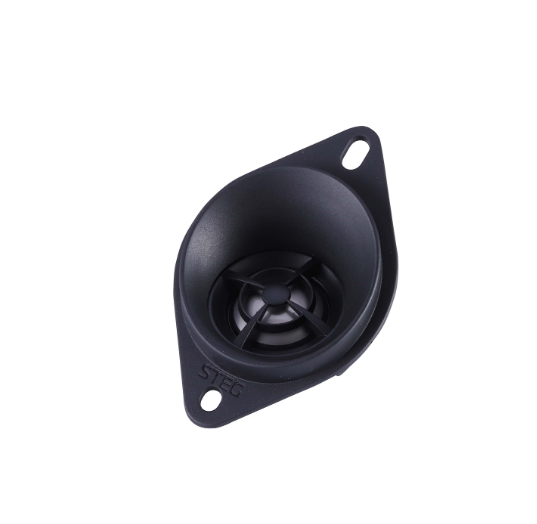 | Typy reproduktorov Koaxiálne reproduktory: Koaxiálne reproduktory sa vyznačujú konštrukciou tzv. Všetko v jednom. Výškový a stredobasový reproduktor sú v jednom koši. Výhodou je jednoduchšia montáž, ale vďaka spojeniu resp. blízkosti pásiem v jednom reproduktore, sa zvyčajne zníži kvalita zvuku. Spravidla uprostred stredobasového reproduktora, je výškový reproduktor, ktorého kmitacia cievka pracuje v druhej vzduchovej medzere spoločného magnatického obvodu. Trojpásmový koaxiálny reproduktor sa skladá zo stredobasového reproduktora, v predu na osobitnom nosníka je stredový reproduktor a samostatný výškový. Komponentné reproduktory: Komponentné reproduktory sa vyznačujú rozdelením na jednotlivé frekvenčné pásma, výškové + stredobasové + popr. basové pásmo. Jednotlivé reproduktory sa dajú umiestniť úplne oddelene, čo má za výsledok lepší zvukový aj akustický prejav. V drvivej väčšine prípadov komponentných reproduktorov je dodávaná aj externá výhybka, ktorá rozdeľuje výškové, stredové / stredobasové a u třípásma aj basové pásmo popr. umožňuje nastavenie decibelovej úrovne u výškového reproduktoru (napr. +2 dB, 0 dB, -2 dB), strmosti (napr. 6dB / okt. 12dB / okt.) či aktívne alebo bi-amp zapojenia. | Výškové |