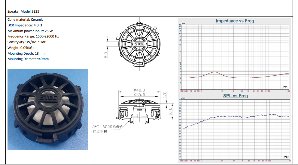 Výškové reproduktory STEG BZ25 pre Mercedes-Benz