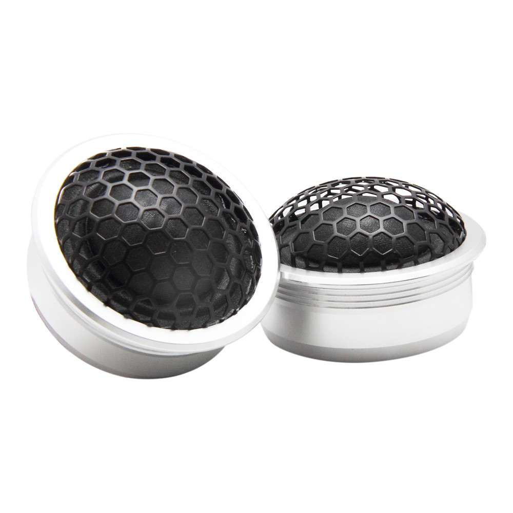 | Typy reproduktorov Koaxiálne reproduktory: Koaxiálne reproduktory sa vyznačujú konštrukciou tzv. Všetko v jednom. Výškový a stredobasový reproduktor sú v jednom koši. Výhodou je jednoduchšia montáž, ale vďaka spojeniu resp. blízkosti pásiem v jednom reproduktore, sa zvyčajne zníži kvalita zvuku. Spravidla uprostred stredobasového reproduktora, je výškový reproduktor, ktorého kmitacia cievka pracuje v druhej vzduchovej medzere spoločného magnatického obvodu. Trojpásmový koaxiálny reproduktor sa skladá zo stredobasového reproduktora, v predu na osobitnom nosníka je stredový reproduktor a samostatný výškový. Komponentné reproduktory: Komponentné reproduktory sa vyznačujú rozdelením na jednotlivé frekvenčné pásma, výškové + stredobasové + popr. basové pásmo. Jednotlivé reproduktory sa dajú umiestniť úplne oddelene, čo má za výsledok lepší zvukový aj akustický prejav. V drvivej väčšine prípadov komponentných reproduktorov je dodávaná aj externá výhybka, ktorá rozdeľuje výškové, stredové / stredobasové a u třípásma aj basové pásmo popr. umožňuje nastavenie decibelovej úrovne u výškového reproduktoru (napr. +2 dB, 0 dB, -2 dB), strmosti (napr. 6dB / okt. 12dB / okt.) či aktívne alebo bi-amp zapojenia. | Výškové |